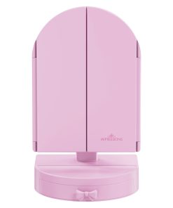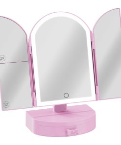 Impressions Vanity Shop Darling Arch Trifold Led Tri-tone Makeup Mirror With Drawer | Rose