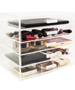 Organize your makeup with Impressions Vanity’s Acrylic Makeup Organizer. Featuring 5 drawers and an open top for easy access and elegant display.