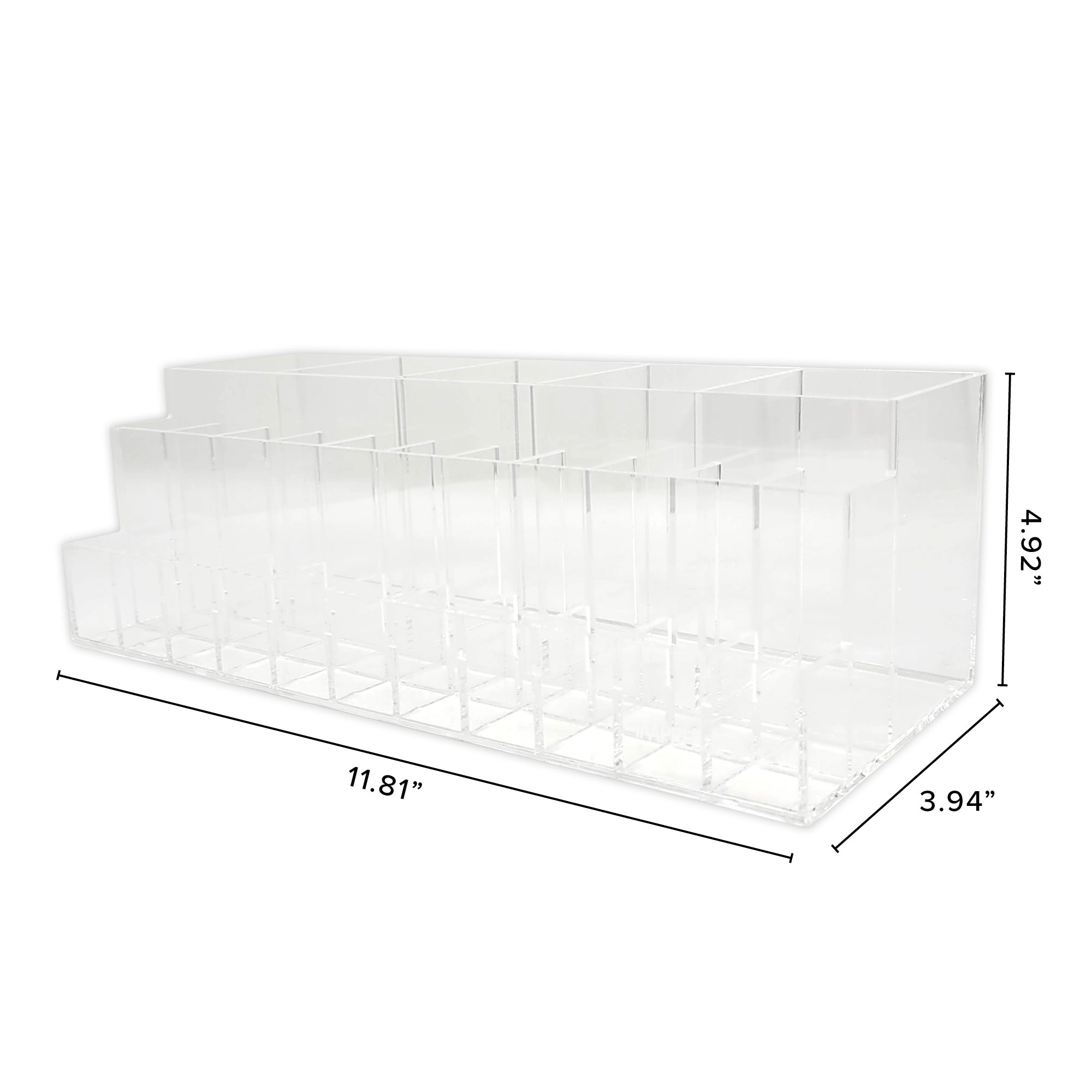 Lipstick lovers, this one’s for you! Made with high-quality crystal clear acrylic, Impressions Vanity’s Acrylic Brush and Lipstick Organizer Trays are the perfect companions to your Impressions Vanity Slaystation! With 5 spacious slots of your most beloved brushes and 22 individual slots for your lip collection you can organize and display your favorite makeup essentials.