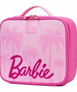 Experience the unique blend of organization and style with our exclusive Special Edition Barbie™ Cosmetic Bag. This bag features a Malibu Barbie Print with its puff-embossed Barbie logo and palm trees adorning the front.When you unzip the bag, you’ll be greeted by the iconic Barbie silhouette and palm trees, transforming the spacious interior into a miniature paradise. Designed for ultimate convenience, it comes with removable dividers, a handy mesh pocket, a vinyl-lined brush holder flap, and an extra zippered interior pocket.With this chic Barbie Cosmetic Bag, staying organized has never been this effortless.
