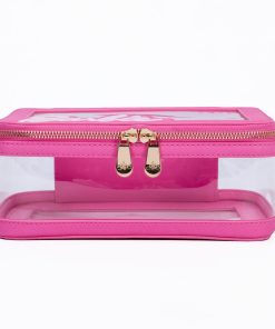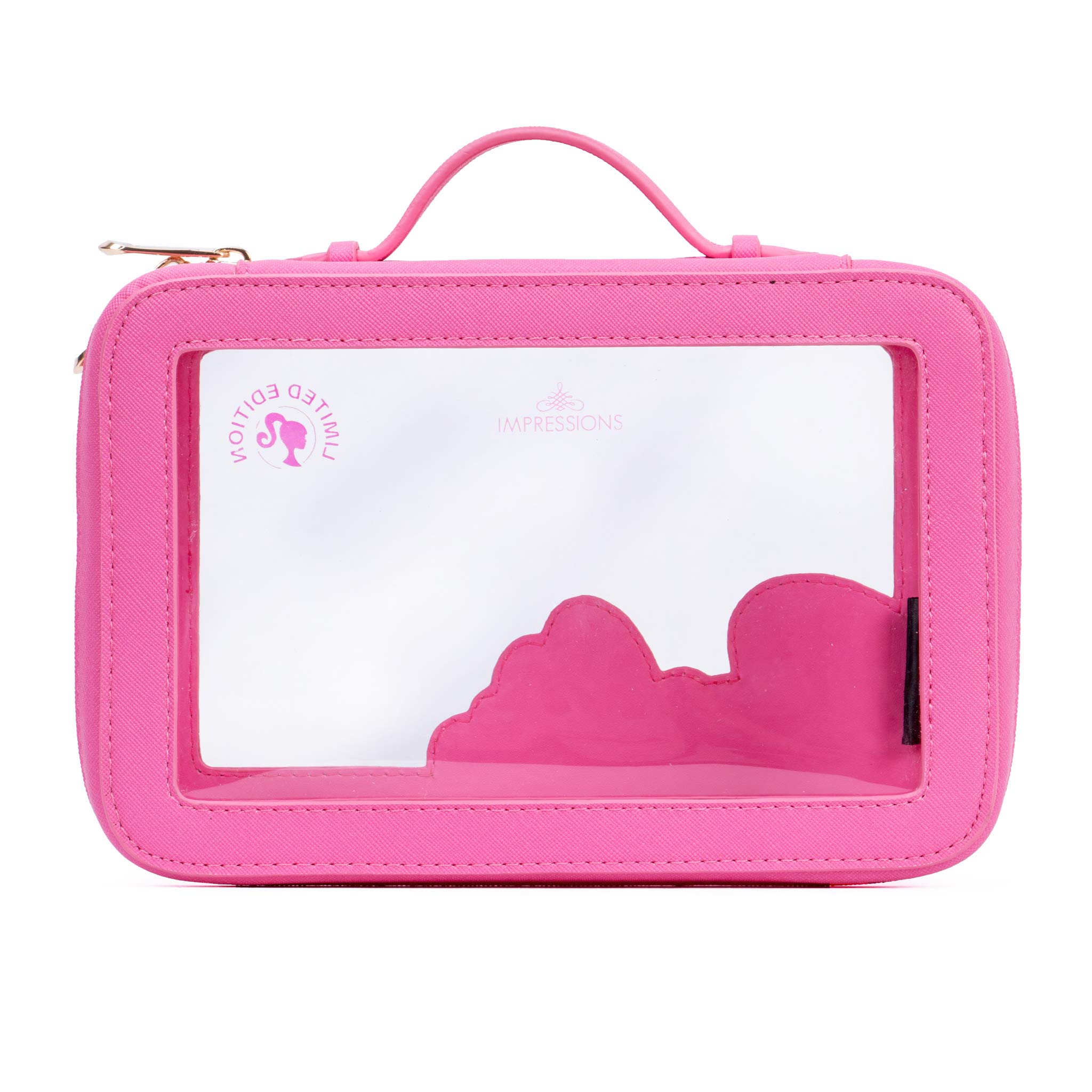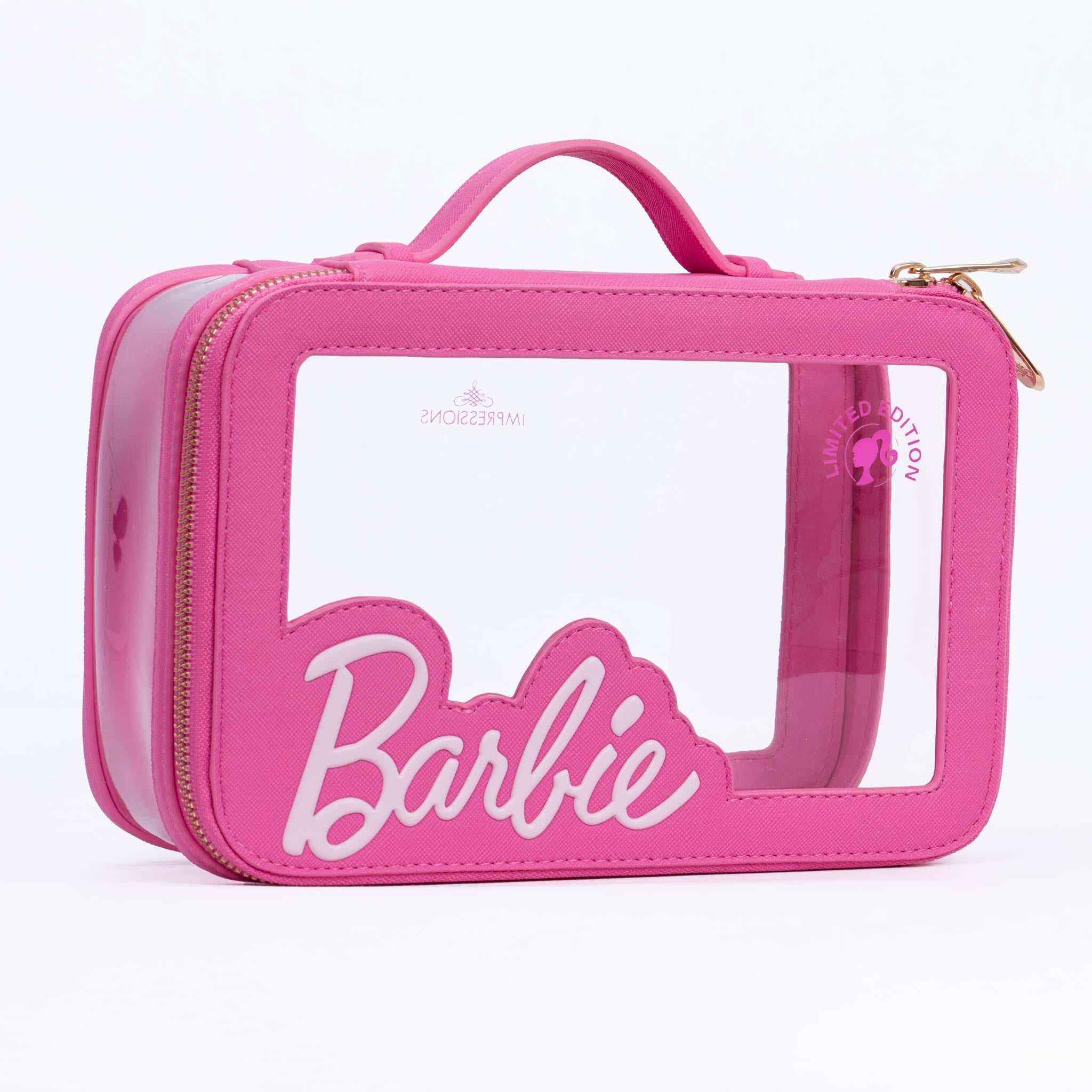 Bring your beauty essentials with you in this Barbie™ Makeup Carry Case. This special edition carrier features a puff embossed Barbie logo on the front, and transparent panels making it easy to find the items you need in style. Designed for convenience and style, it comes with a comfortable top handle, a roomy interior to accommodate all your daily must-haves, and a gold-branded Impressions Vanity zipper for that touch of luxury. The classic Barbie pink finish adds a pop of color and a dash of personality to your beauty arsenal.