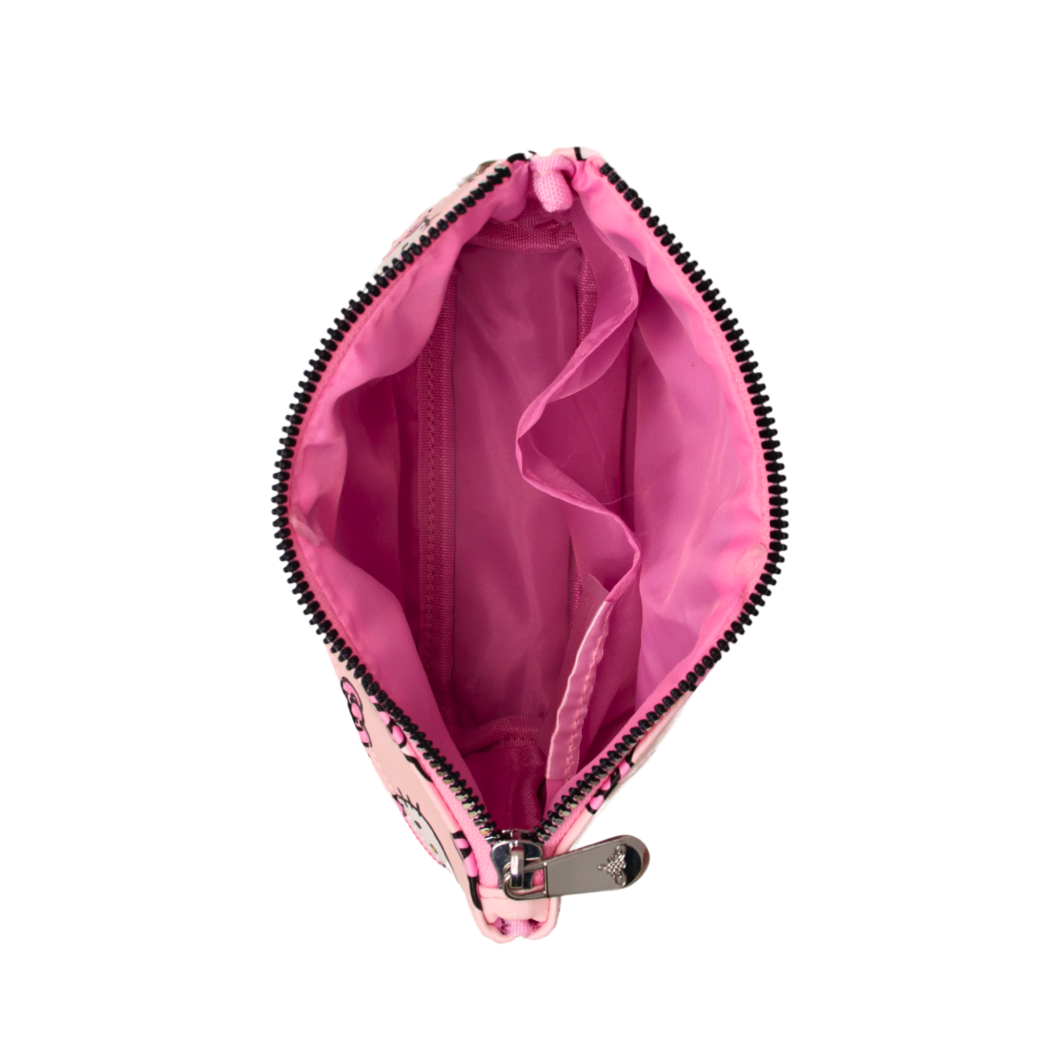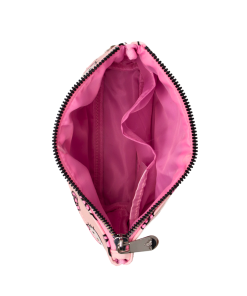 Unzip the top to reveal a spacious main compartment with an inner slip pocket for easy access to your must-haves. The front zipper opens to a second section, perfect for storing smaller essentials like makeup brushes or accessories.