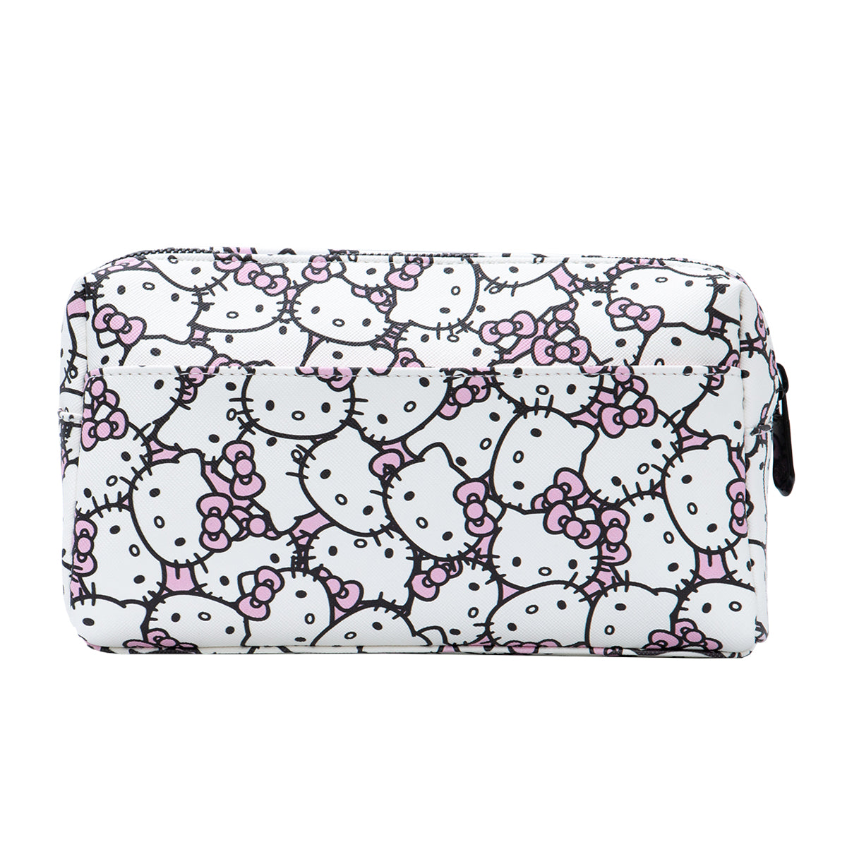 Keep your everyday essentials stored in this SUPERCUTE Hello Kitty® Cosmetic Pouch. Featuring our exclusive Hello Kitty® prints, this pouch was designed with on-the-go style in mind. Utilize the space to stay organized with the inside zipper pocket and bonus slip pocket on the back. Available in Pink Animal or White/Pink All Over Print