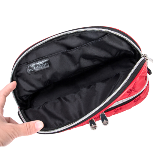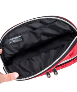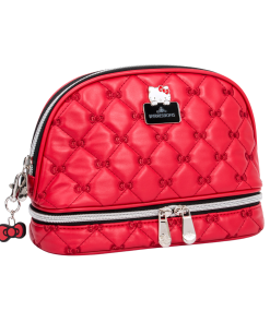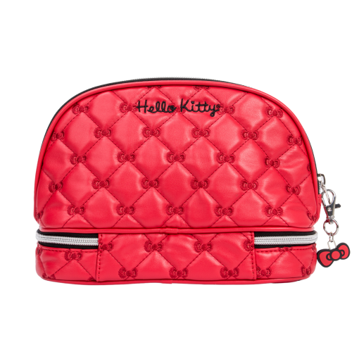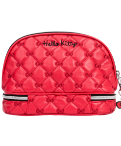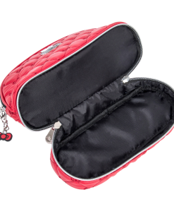 This supercute bag features a puffed quilted exterior in vibrant red, adorned with charming embroidered bows. Unzip to reveal a spacious interior, complete with an inner slip pocket for easy access to your must-haves. Unzip the bottom tier compartment- perfect for storing your smaller essentials, such as makeup brushes, accessories, or other must-have items.