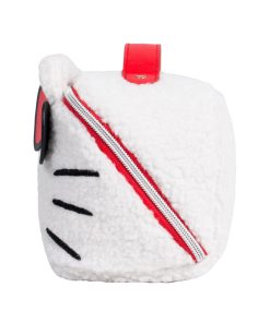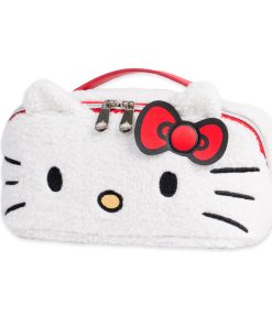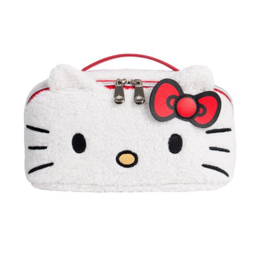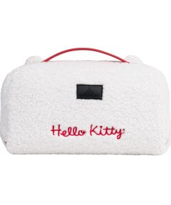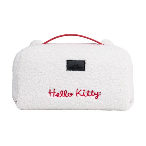 Keep all of your beauty and travel essentials together in this supercute makeup bag! This cozy bag features Hello Kitty’s face embroidered on the front, plus 3D detailing of her ears and her signature red bow.Flip to the backside to reveal Hello Kitty in cursive script!