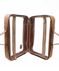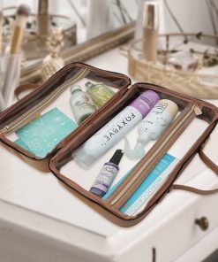 The Malta Clear Toiletry Case – Large is your one-stop shop for stashing all your full size must-haves! It has two spacious compartments and a handy handle for portability. Perfect for the overpacker jetsetter, this roomy carrier is a great way to keep your makeup, toiletries, and more tucked away neatly.