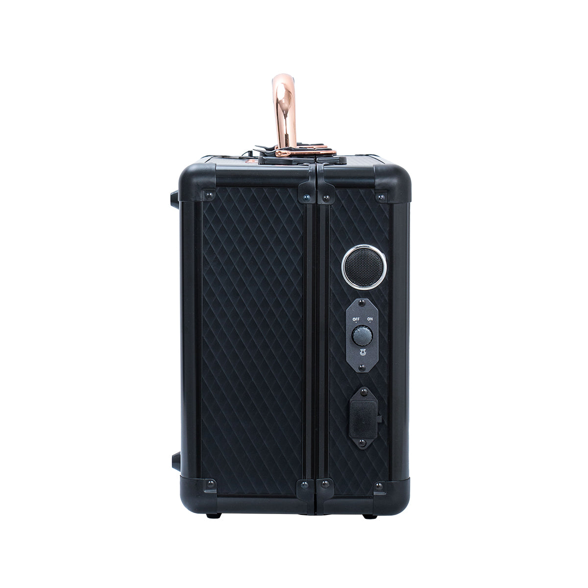 Your favorite SlayCase just got even better! Introducing the SlayCase 3.0, the ultimate makeup train case, now with built-in speakers. The SlayCase 3.0 features a built-in mirror, dimmable LED lighting, and deep makeup storage carefully constructed to be durable and portable. With 4 clear LED bulbs and extendable makeup tray storage, this case is easy to use, simply plug the cord into an outlet to power up. Wherever you are, you can get ready with all your go-to essentials while listening to your favorite playlist or podcast! This travel friendly case that lets you carry your glam everywhere you go!Slay anywhere with our SlayCase® Makeup Vanity Travel Cases!