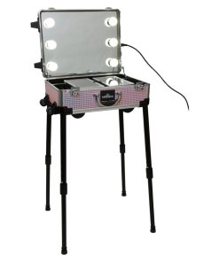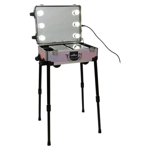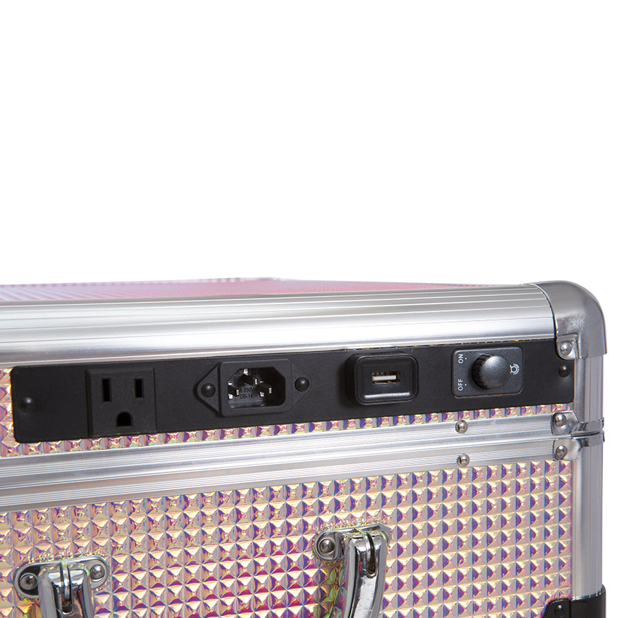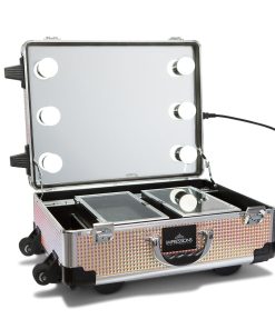 Slay anywhere with our Slaycase XLS Makeup Vanity Case! This case comes with everything you’ll need from its built-in mirror it the classic Hollywood style light bulbs. Plug in the case to an outlet and power up the lights with the dimmer switch so you can get that ideal lighting. The case also has a USB port and electrical outlet for powering up your vanity items. This SlayCase also comes with stand legs to prop up your vanity set. The legs can be adjusted to the right height and are easily stored inside the case.The SlayCase has features tiered compartments that are detachable and can hook to the sides for extra room. Once you’re done, simply pack up and roll away with your vanity set!