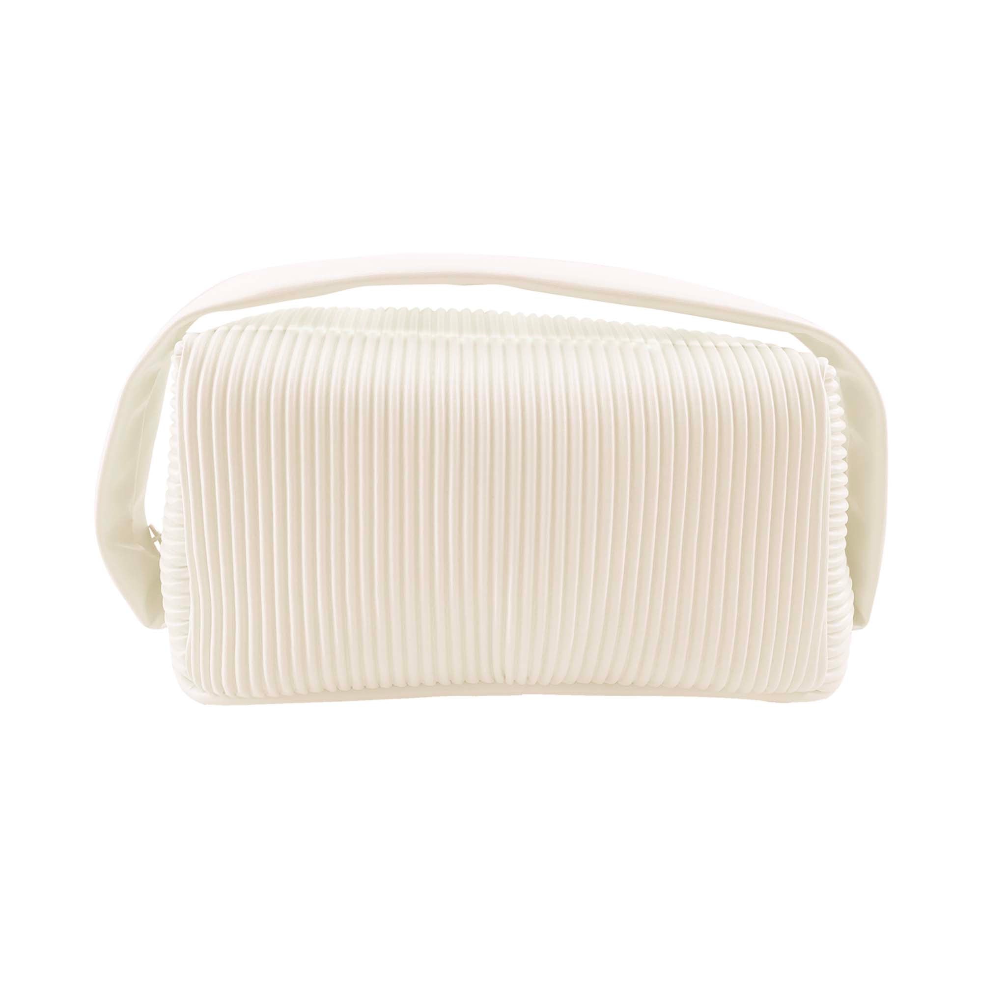 Crafted with smooth faux leather, featuring a vertical quilted design with a top zippered compartment and spacious interior, you can easily access and organize your beauty essentials.