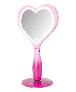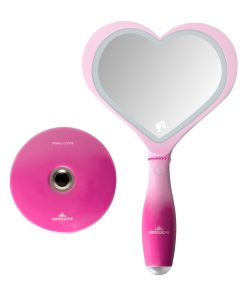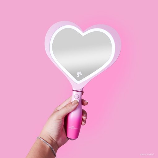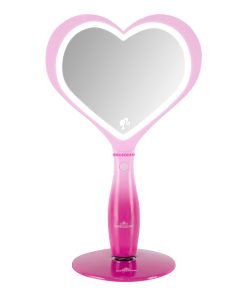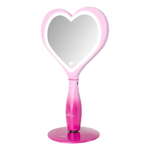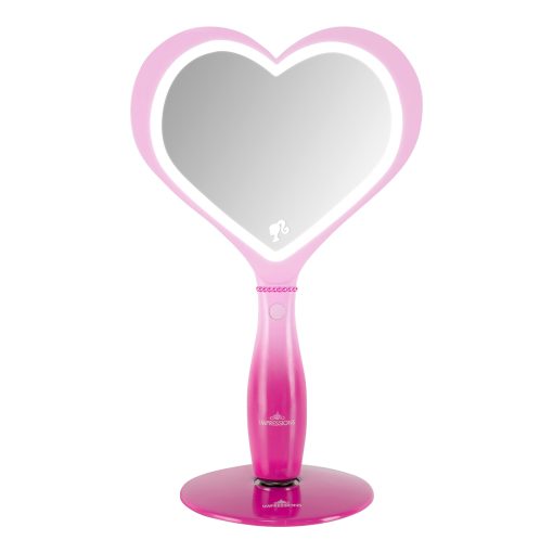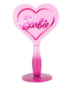 Feel inspired when getting ready with the Barbie™ LED Handheld Makeup Mirror with Standing Base ✨This heart-shaped mirror is a stunning blend of form and function, adorned with the iconic Barbie heart logo, making it a fashion statement in itself. It is illuminated by a built-in luminous LED light strip, and a simple tap powers up the light for your makeup sessions. Adjust the brightness effortlessly by pressing and holding the button to create your desired ambiance.The mirror comes with a magnetic ball standing base, providing hands-free convenience for seamless use. Moreover, it’s rechargeable, offering a cordless experience. Recharging is a breeze—simply plug in the USB charger to the mirror, and the handy light indicator lets you know when it’s ready: red while charging, and blue when fully charged.