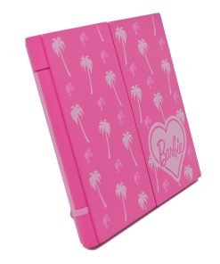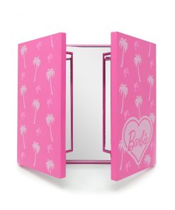 Touch up your makeup throughout the day with the Barbie™ Trifold Mini LED Makeup Mirror. This compact gem is your ideal companion for makeup application or quick touch-ups, no matter where you are.Adorned with the iconic Barbie™ silhouette and palm trees, it boasts a foldable stand on the back, allowing you to conveniently place it in your bathroom, vanity, or even hotel room. Plus, it’s compact enough to slip into your purse or gym bag, making it your trusted on-the-go beauty companion.The built-in LED light provides perfect visibility, ensuring you achieve flawless results in any environment. Charge it wirelessly with its QI compatibility or plug it in via USB.