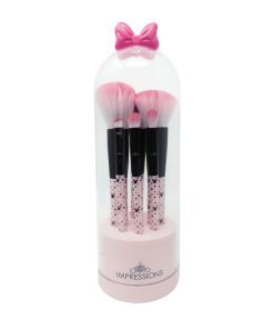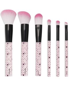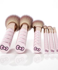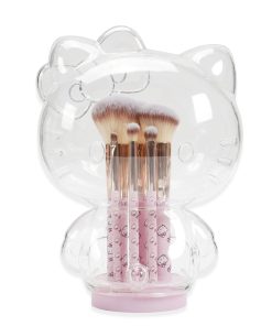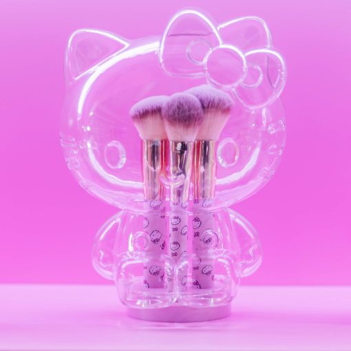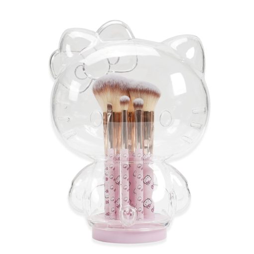 This Hello Kitty® Supercute Signature 6-PC Brush Gift Set is a star essential for any makeup lover or collector. It includes six pieces of professional-grade makeup brushes nestled on a pink stand base and a transparent 3D Hello Kitty cloche to protect the brushes from dust!