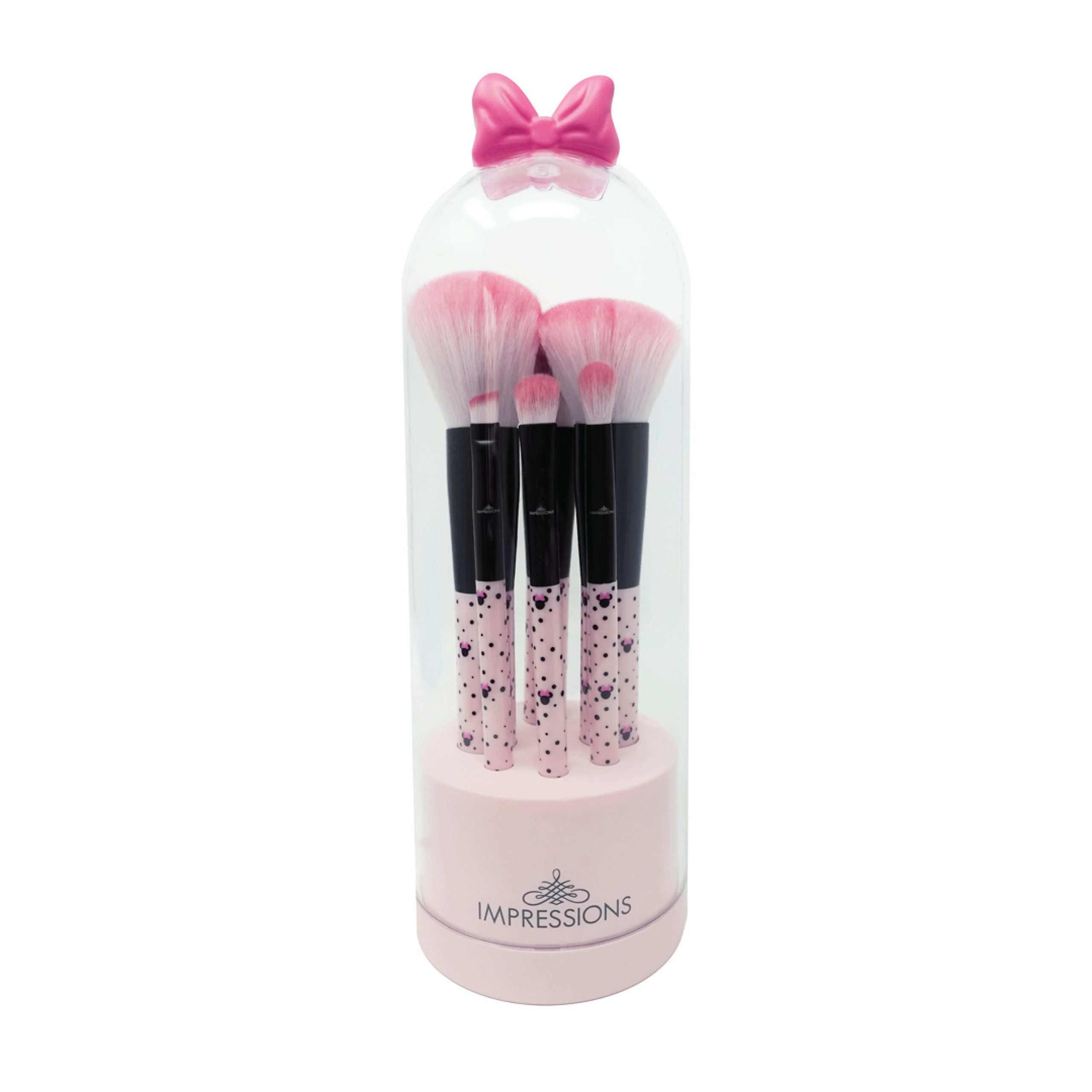 Show your love for Disney’s Minnie Mouse with the Perfectly Pink Bell Jar Gift Set. This set includes 6 brushes. Complete with a pink stand to store the brushes in an upright position and a plastic cloche adorned with Minnie Mouse’s iconic bow, ensuring protection from dust and other particles. Perfect for everyday use at a vanity or traveling on the go, this brush set is an ideal addition to any collection