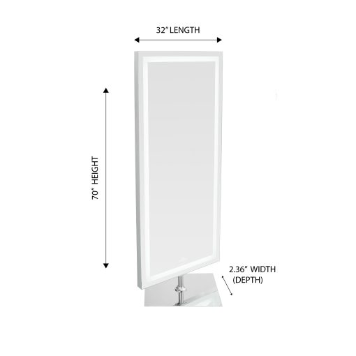 A full glance at crystal glitter! From head to toe admire gorgeous crystal sandblast framing. The Cristal Full Length is a stand dressing LED mirror that comes with a base to add a touch of grace to your home. This sophisticated mirror can also be turned 180 degrees around. Includes a knob dimmer for lighting adjustments. *This product requires Residential Curbside delivery (Freight Service) within the contiguous United States