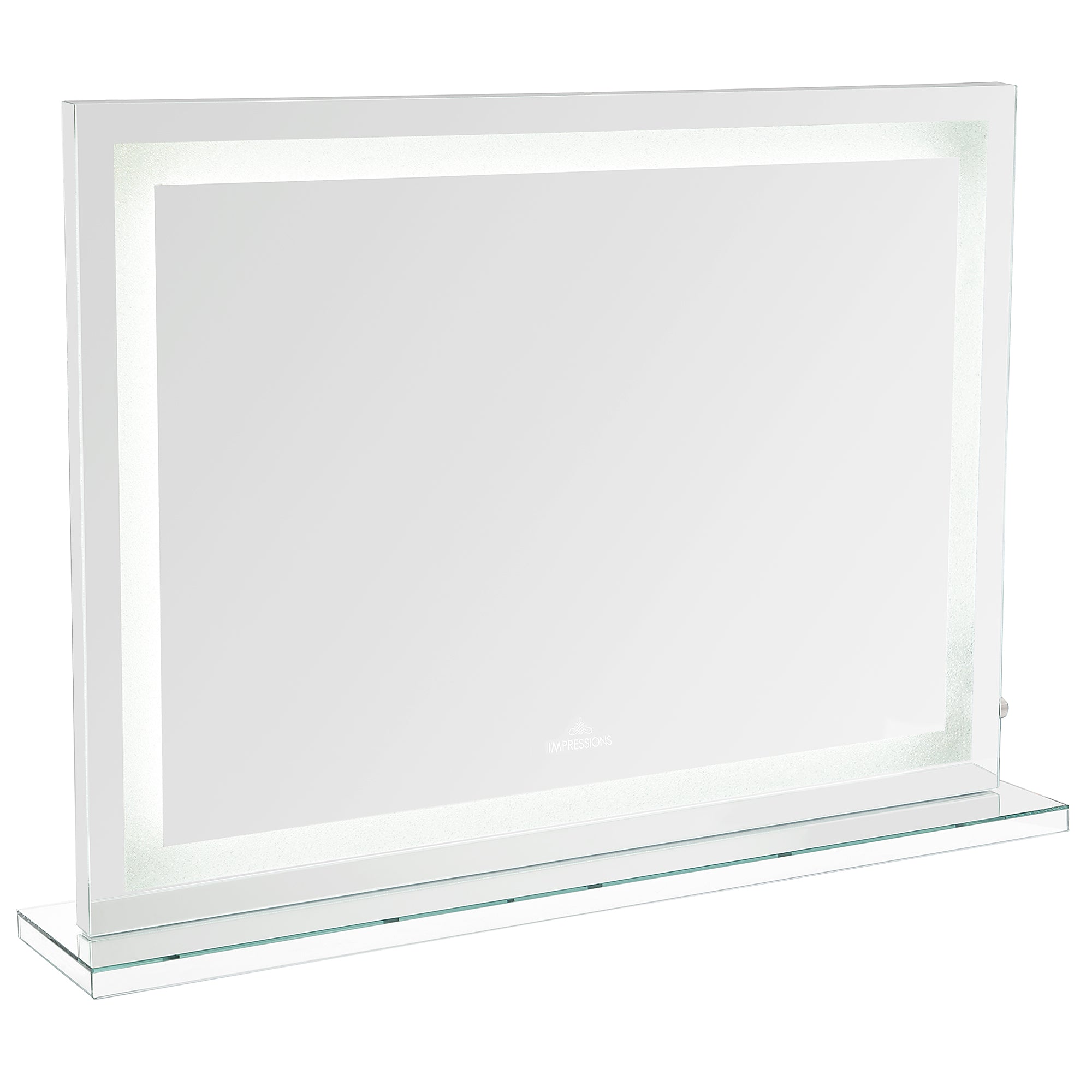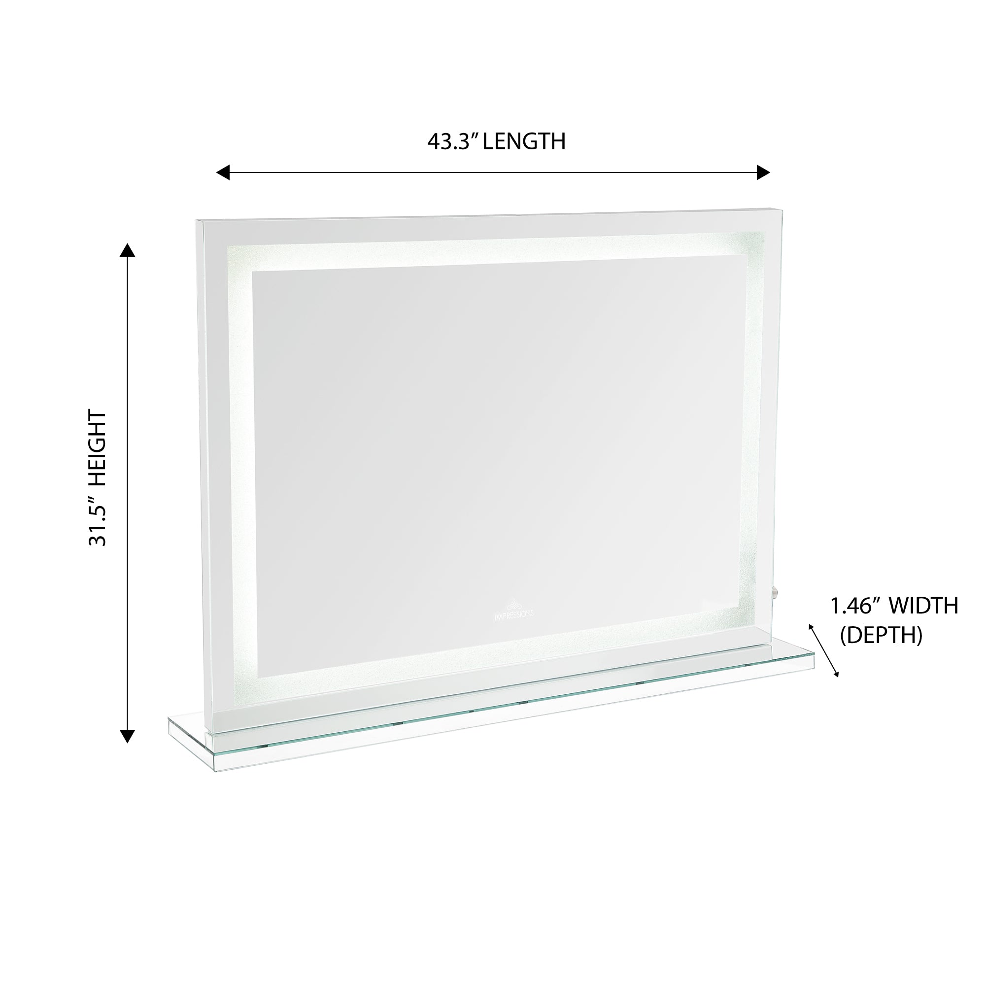 The Cristal Pro Vanity Mirror is the classic vanity experience— the Hollywood Glam design that provides perfect, even lighting and superior mirror reflection clarity. Featuring Cristal sandblasting around the mirror and LED strips for bright lighting equipped with a knob dimmer switch. The mirror is encased in a robust aluminum body that can easily be wall-mounted with the pre-installed mounting hardware or mount it on a SlayStation with the included base!Bluetooth option: The Cristal Pro comes with 2 wireless Bluetooth speakers on the back and super bright LED lights integrated into the mirror with a knob dimmer on the right frame to control your light intensity! Only Impressions Vanity® Hollywood Vanity Mirrors are certified by ETL, CE, and RoHS safety standards.