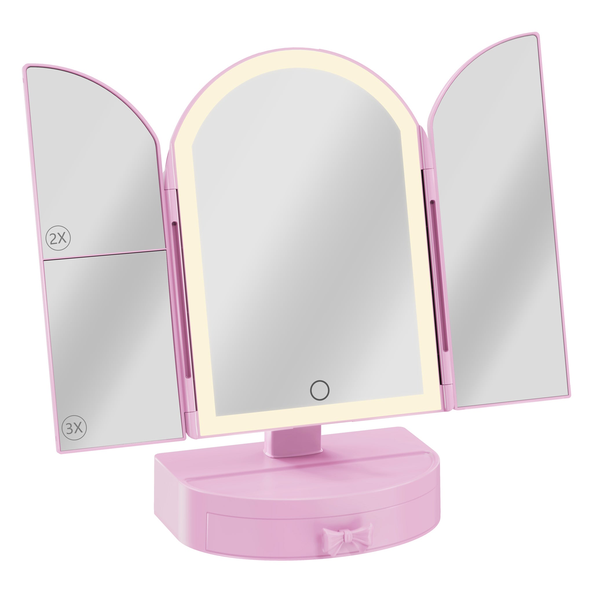 This ultimate vanity companion comes with a darling drawer to keep your precious trinkets and beauty must-haves tucked away. Its soft arch shape adds a touch of elegance and romance to any room. Plus, you can easily adjust the LED light temperatures to set the perfect mood, while the 2x and 3x magnified side mirrors let you get up-close for flawless touches.