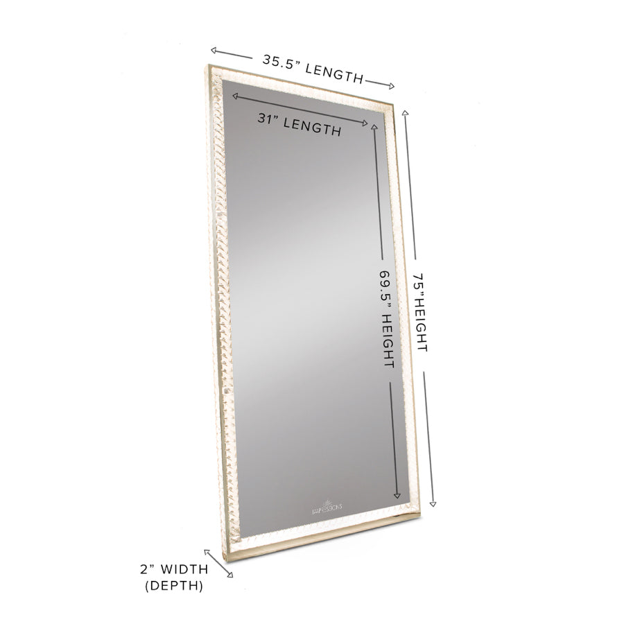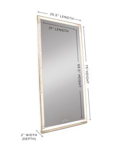 Designed in collaboration with Tamanna Roashan (@DressYourFace and @DressYourPlace). The Radiant Premium Illuminated Crystal Floor Mirror is the flagship of the Diamond Collection that brightens the room with its built-in energy-efficient LED strip lights. With the touch-sensitive power remote, you can transition from cool to warm lighting. Adjust the brightness to the level you want!*3 AAA batteries sold separatelyWe love seeing your photos! Tag us on Instagram to submit your photo for a chance feature on our pages! *This product requires Residential Curbside Delivery (Freight Service) within the contiguous United States*