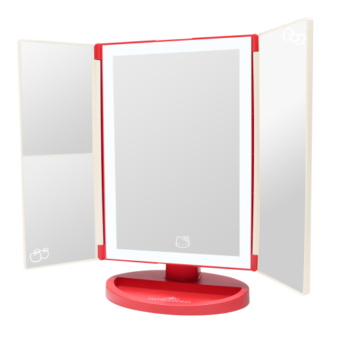 Add a crisp touch of sweetness to your daily routine with the Hello Kitty®️ “Apples” Trifold LED Makeup Mirror.