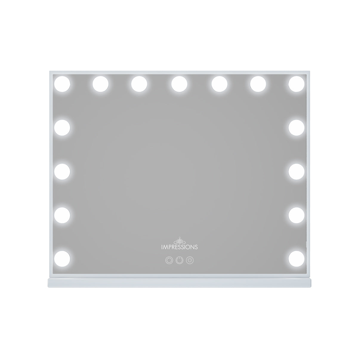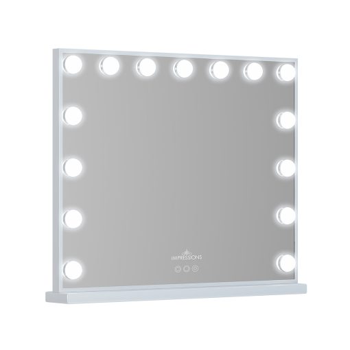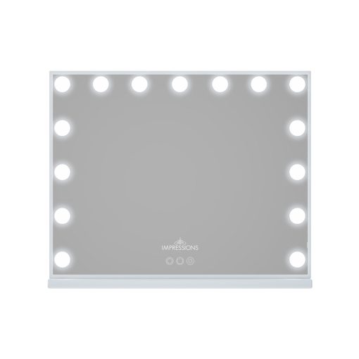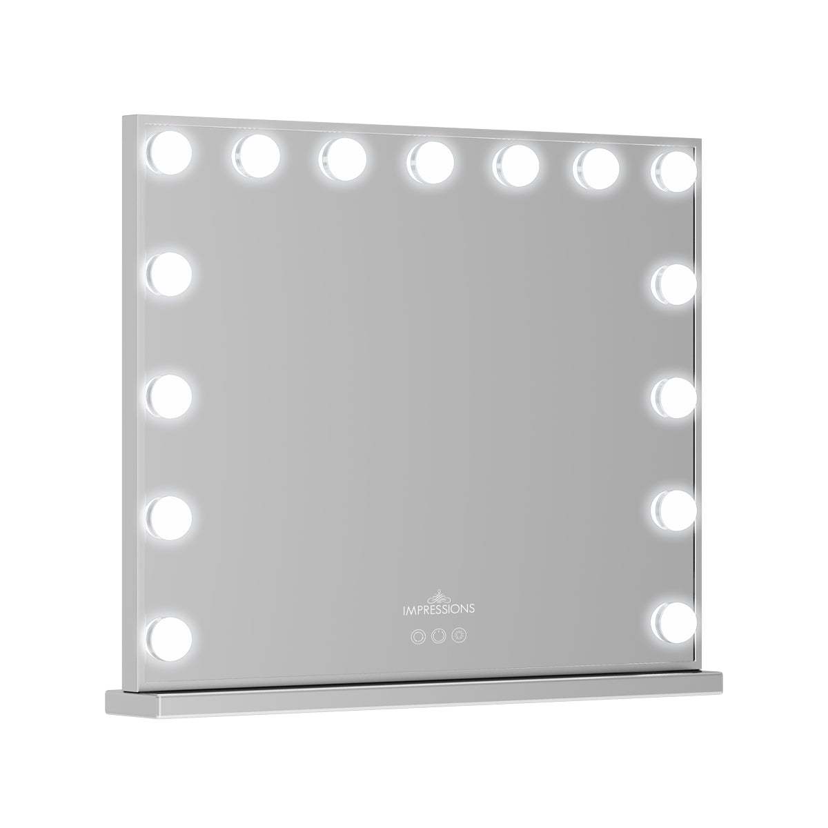 The Impressions Vanity Hollywood Aurora Vanity Mirror is the modern vanity experience—a sleek yet glamorous design that provides a perfect, even lighting and superior mirror reflection clarity. Ideal for makeup application at any setting, home or professional—also for taking that perfect Instagram selfie! *Please note bulbs can not be removed or replaced*