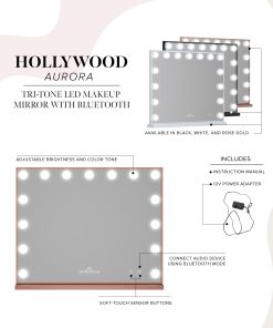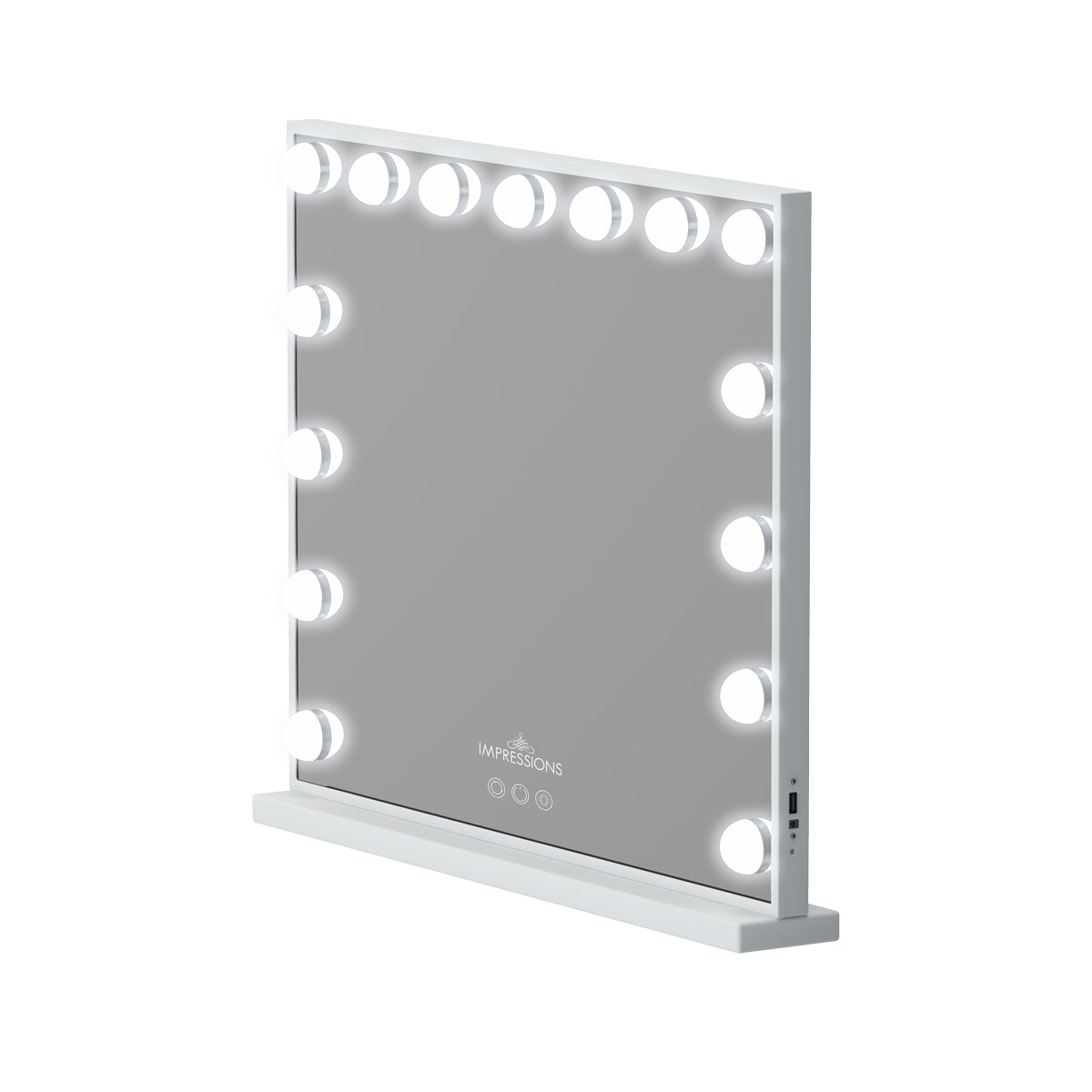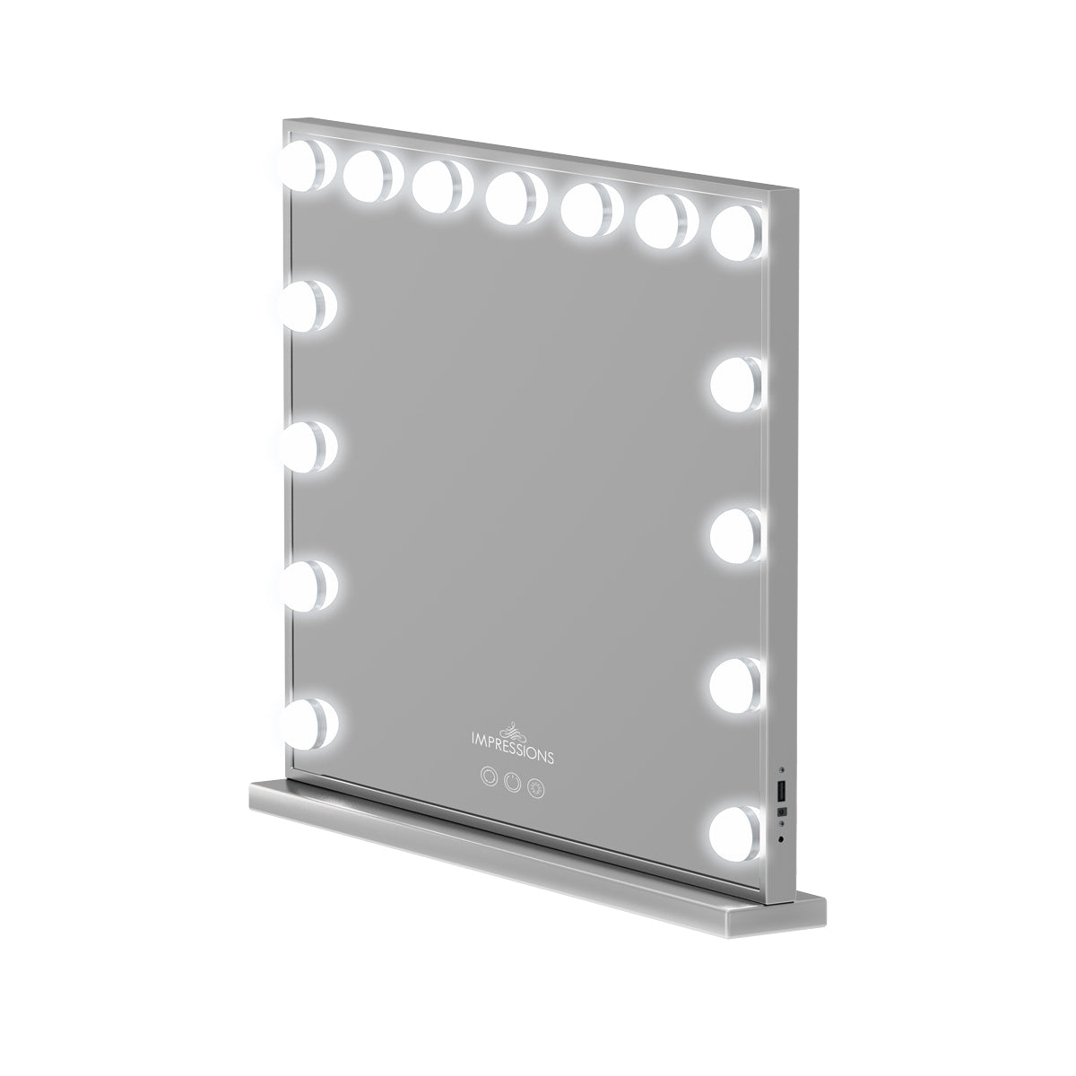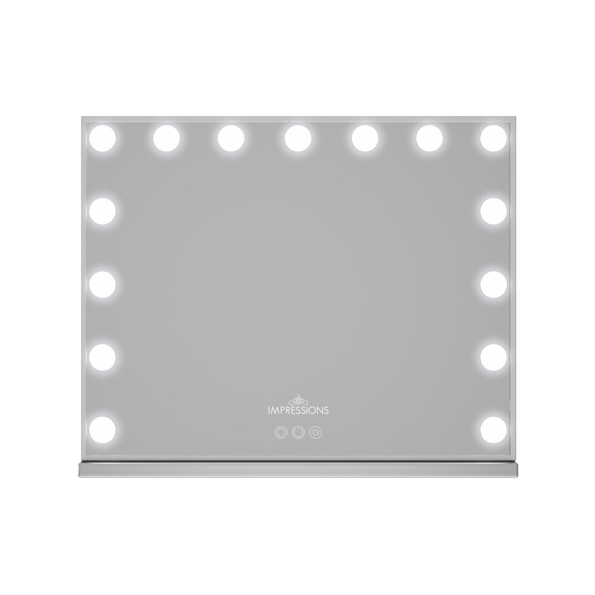 The Impressions Vanity Hollywood Aurora Vanity Mirror is the modern vanity experience—a sleek yet glamorous design that provides a perfect, even lighting and superior mirror reflection clarity. Ideal for makeup application at any setting, home or professional—also for taking that perfect Instagram selfie! *Please note bulbs can not be removed or replaced*