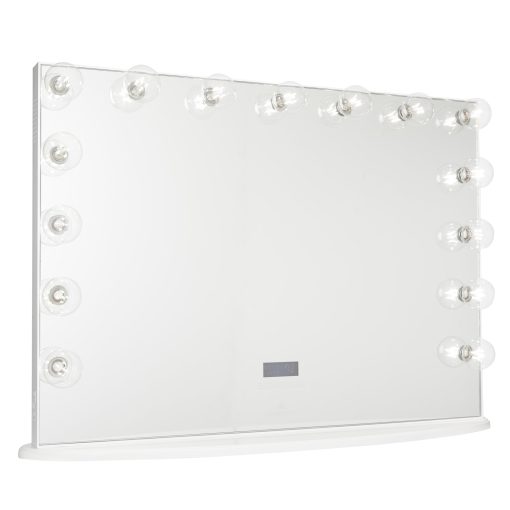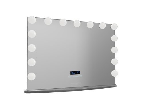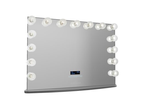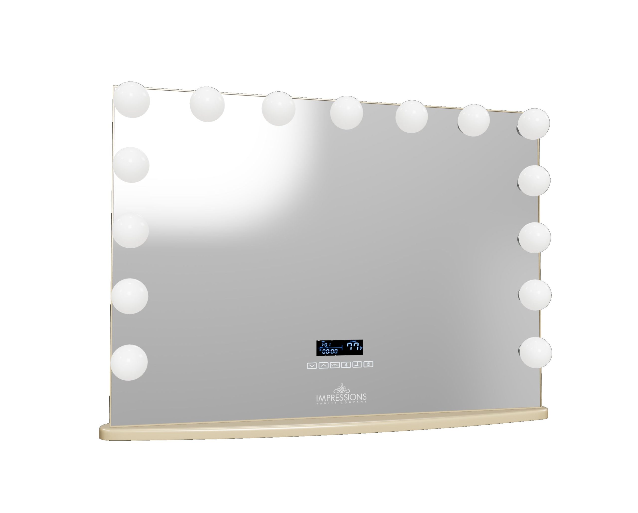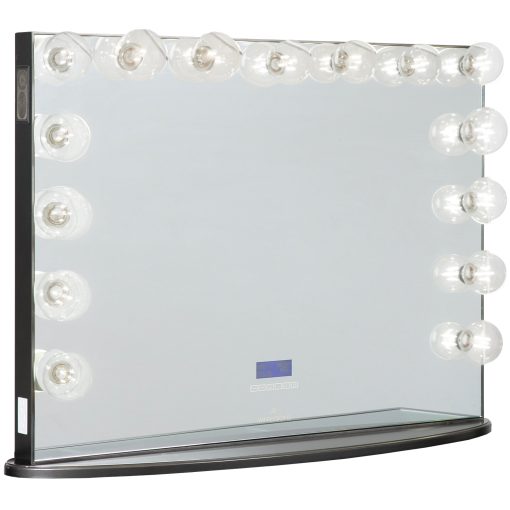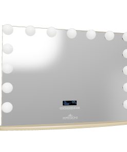 The bestselling Impressions Vanity® Hollywood Glow® Pro is designed from start to finish and beautifully handcrafted using high-quality materials. This mirror is the original frameless designed mirror. Equipped with 15 light sockets and a dimmer switch for that perfect lighting! Includes built-in outlets and USB ports on the side for you to power up or charge your beauty accessories. A detachable base is included to easily remove and place on any of our SlayStation tables or attach the base and place it on any vanity setup.The Hollywood Glow Pro also comes with the option of adding in Wireless Bluetooth Speakers. Installed on the mirror is an all-new digital LED screen and Bluetooth connectivity for wireless audio streaming. Use the touch-sensitive control panel to engage the Bluetooth, turn its volume up or down, and even check the temperature outside!Only Impressions Vanity® Hollywood Vanity Mirrors are certified by ETL, CE, and RoHS safety standards.