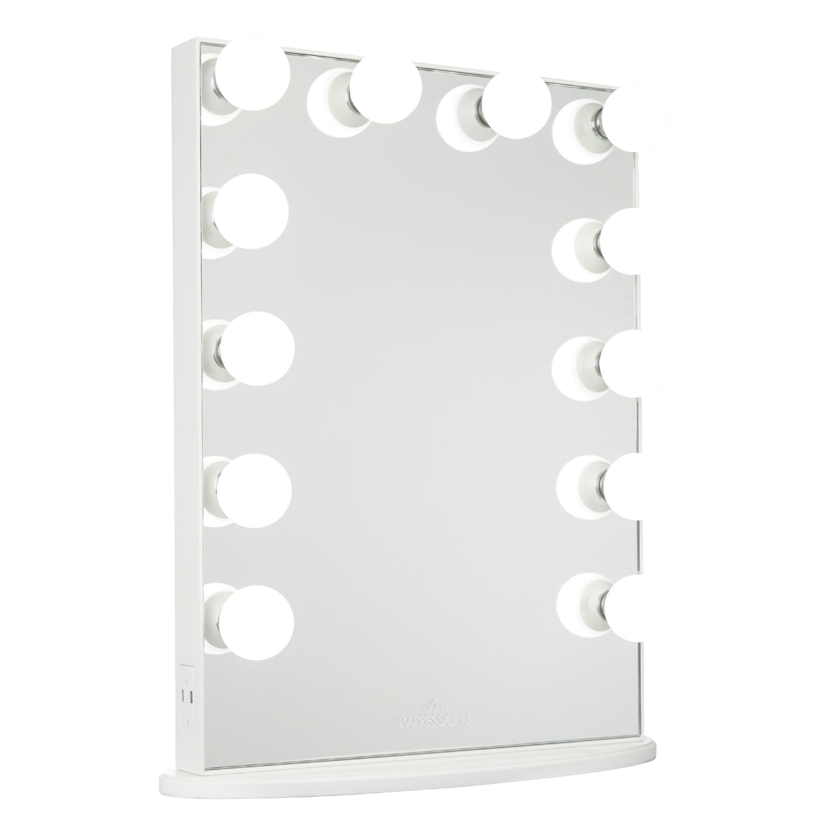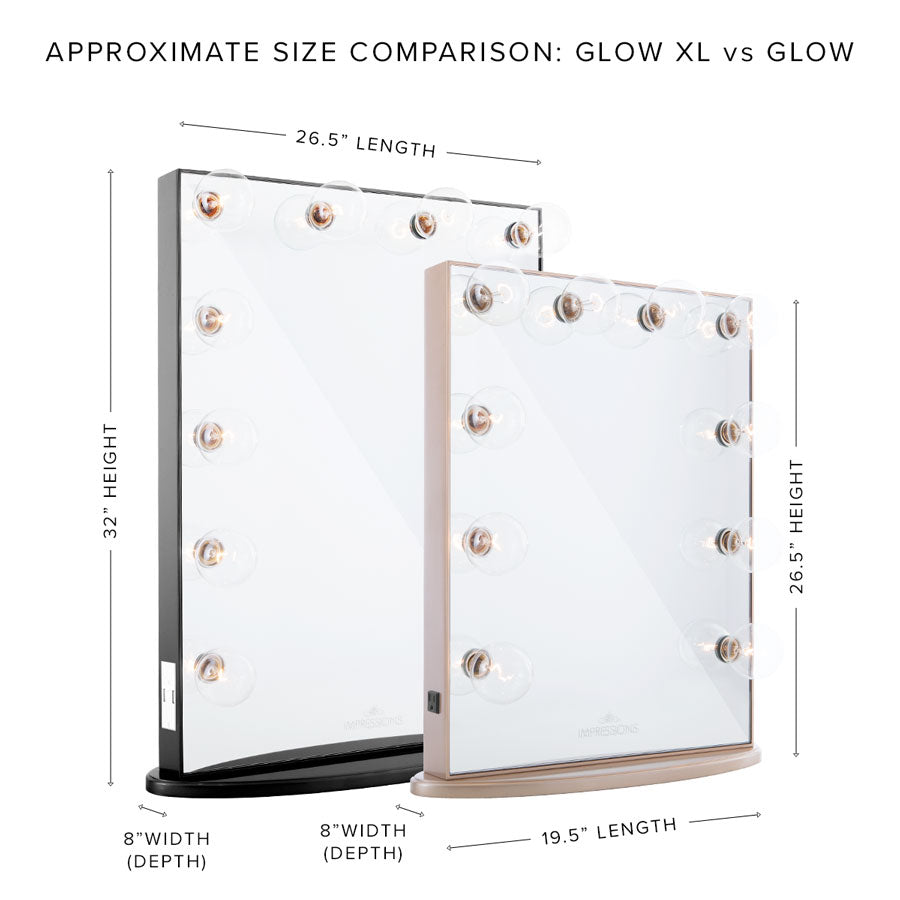 The industry-leading bestselling Impressions Vanity® Hollywood Glow® XL Vanity Mirror is the perfect size and layout for vanity stations. The Hollywood Glow® XL’s versatility is only matched by its flawless lighting prowess, inspiring elegance and innovative one-of-a-kind modern Hollywood design.Designed with beautiful form, useful function, and durable quality in mind, Impressions Vanity® mirrors will provide glamorous lighting and superior clarity for years to come, guaranteed with our Five-Year Limited Warranty.Our flagship line, the bestselling Impressions Vanity® Hollywood Glow® Series is designed from start to finish and beautifully hand crafted using high-quality materials. Every step performed by top craftsmen within our high-standard facility, our Hollywood Glow® Series is masterfully created with signature finishes and glazed with the perfect touch of gloss.Truly an ultimate statement in vanity elegance, our exclusive patented Hollywood Glow® Frame design strikes the perfect balance between luxurious classic and ultra-chic modern, birthing a new brand of Hollywood glamour® and simple sophistication that has countless makeup lovers, pros and beauty bloggers falling in love. Join thousands of happy owners today and make your every makeup session an ethereal pleasure you’ll fall in love with each and every time!We love seeing your photos! Tag @ImpressionsVanity on Instagram with the hashtag #ImpressionsVanityGlow to submit your photo for a chance feature on our pages!
