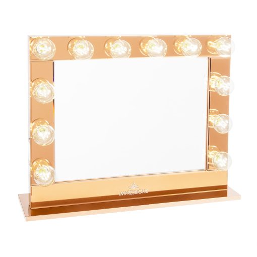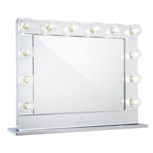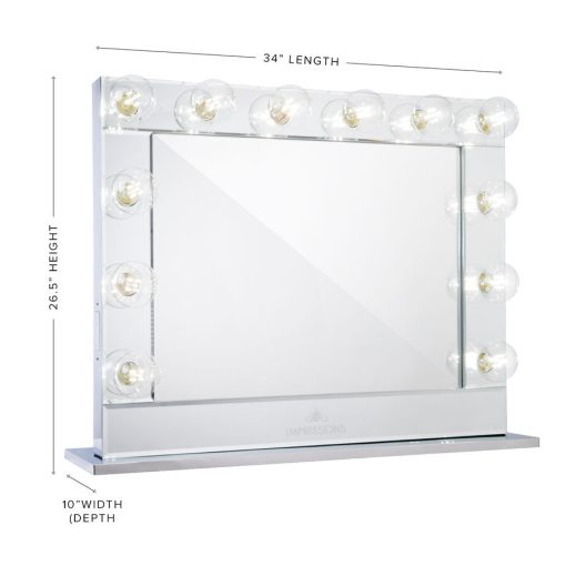 The Impressions Vanity® Hollywood Reflection® Plus Vanity Mirror is what dreams are made of! Our superior-quality mirror comes with our mirror borders to really reflect and light up your vanity setting. The perfect centerpiece!Have the perfect lighting with the built-in dimmer switch. Power your vanity essentials with the dual outlets. The mirror has an outer metal chrome frame and comes with the rectangular chrome base. We love seeing your photos! Tag @ImpressionsVanity on Instagram with the hashtag #ImpressionsVanityReflection to submit your photo for a chance feature on our pages!