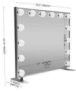 Fit our ultra-slim Hollywood Touch Duo-Tone Wide LED Makeup Mirror anywhere and complete your vanity set! Equipped with built-in long-lasting LED Lights around the mirror for even lighting. Tap the power button to power it on/off and hold to adjust the brightness to your perfect level. Tap the right button to switch between natural, warm, or cool lighting. The mirror comes with legs you can attach and have it sit on your makeup station. Or remove the legs and hang it on the wall! This mirror has pre-drilled slots in the back for wall-mounting. ** Ask a local hardware store to ensure that the screws and anchors are right for your particular walls