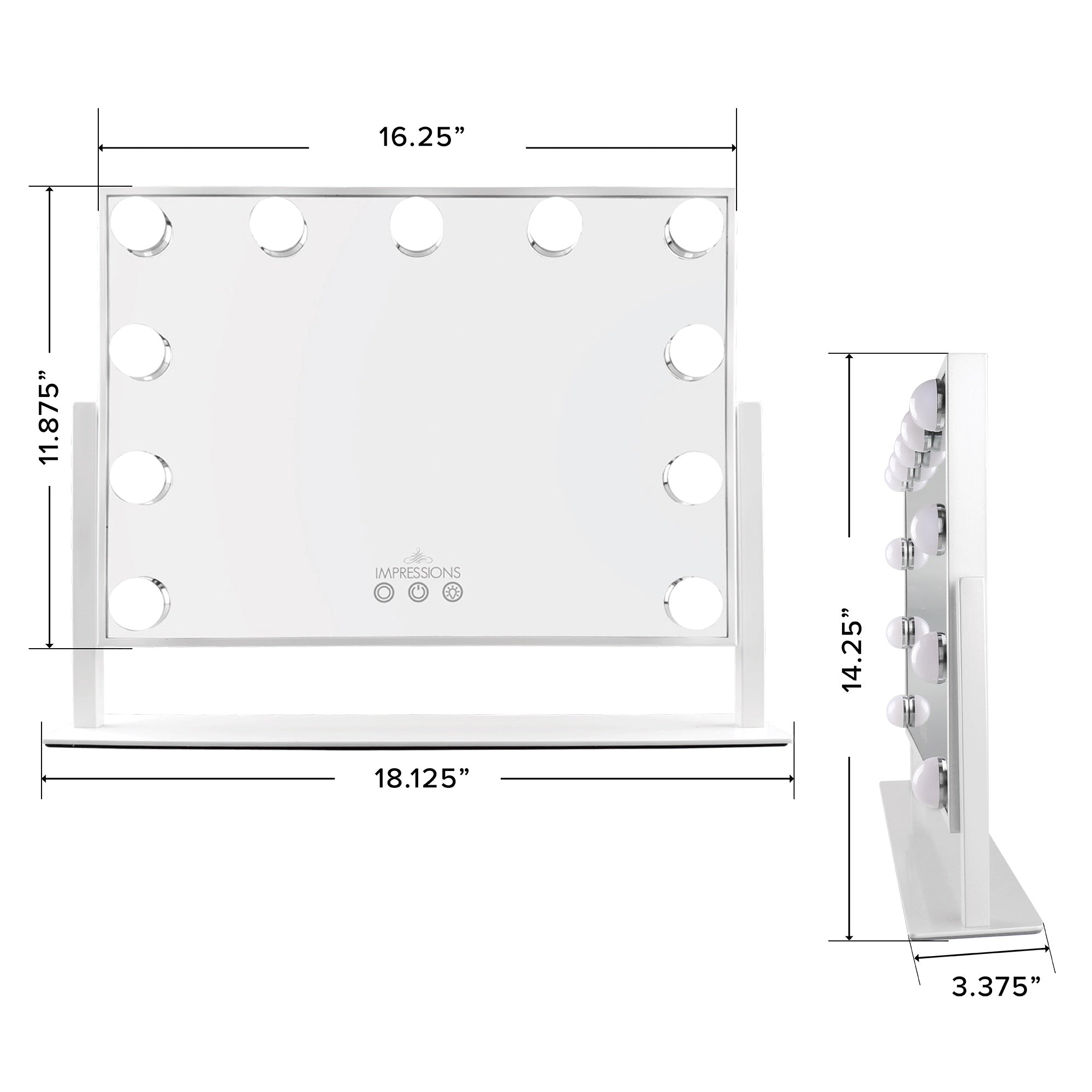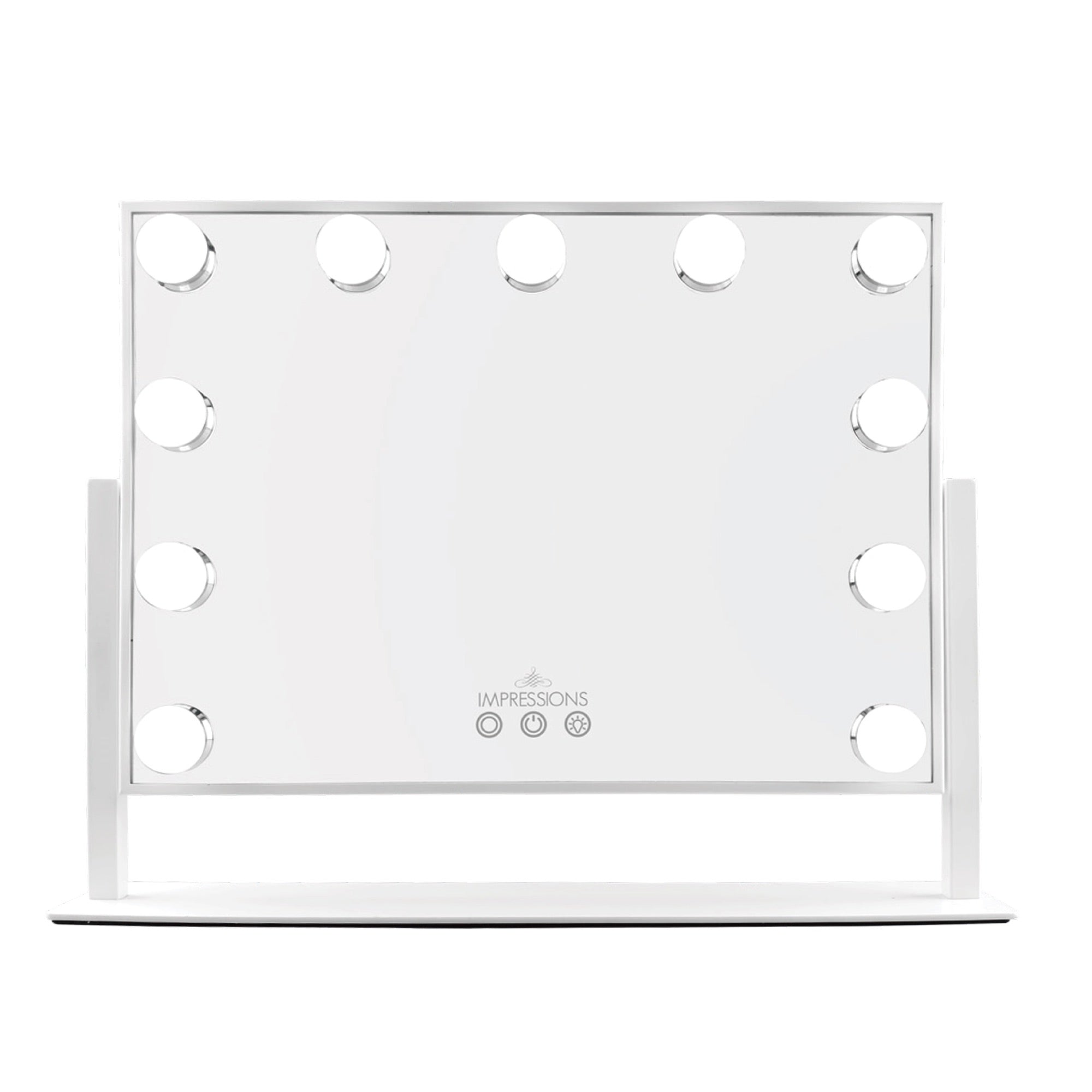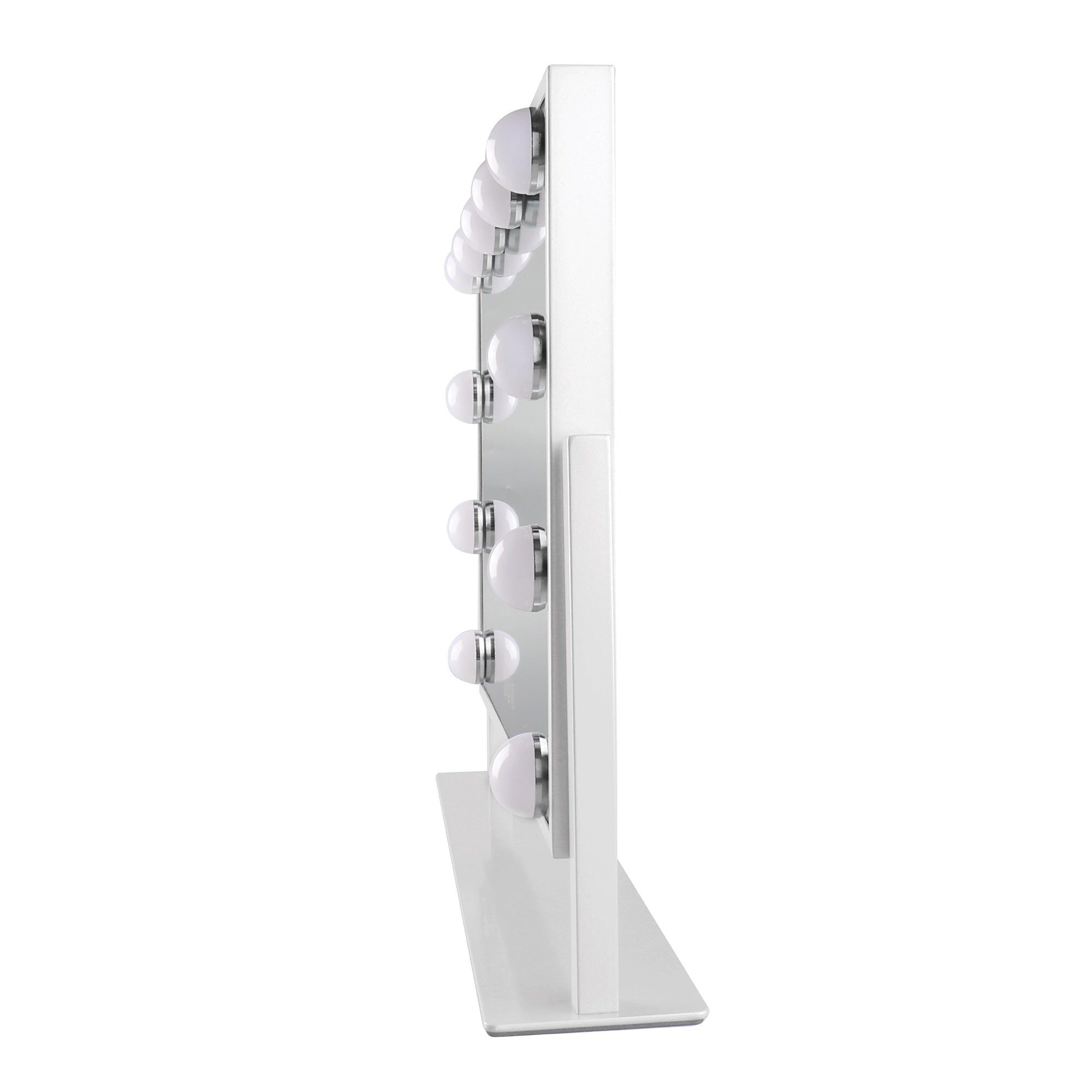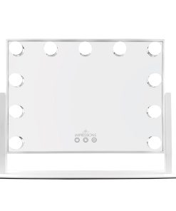 Bring your inner Artiste out with the Hollywood Tri-Tone Artiste XL Makeup Mirror. Equipped with built-in long-lasting LED Lights around the mirror for even lighting. Tap the Power button to power it on/off. Tap the Light Color button to switch between cool white, natural and warm light tones. Hold the Light Bulb button down to adjust brightness.