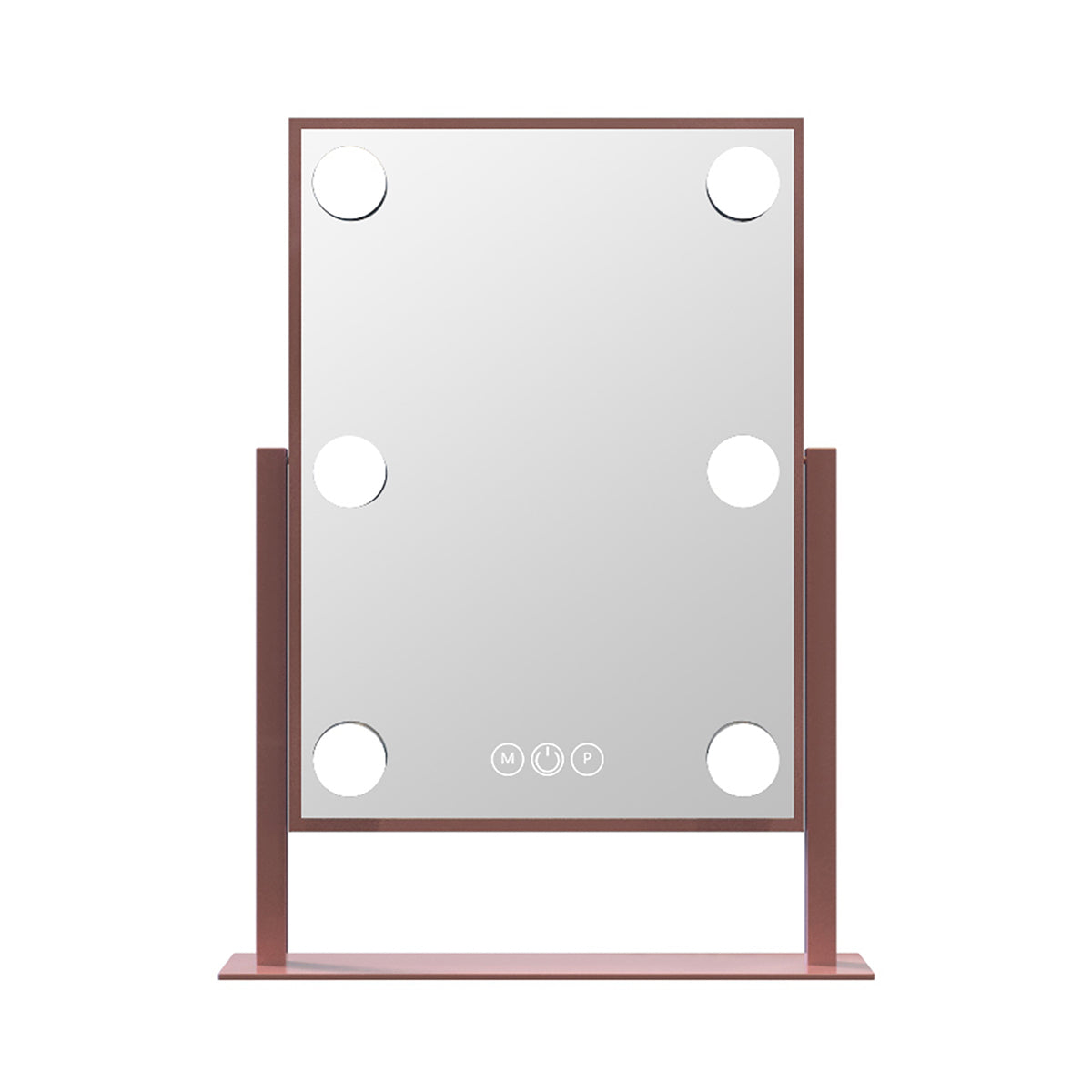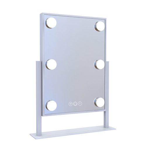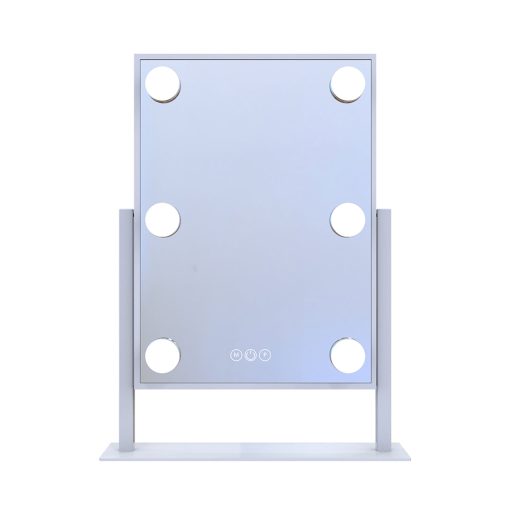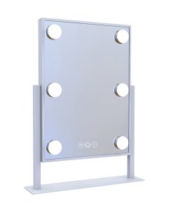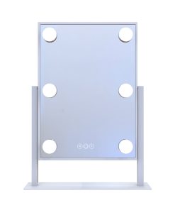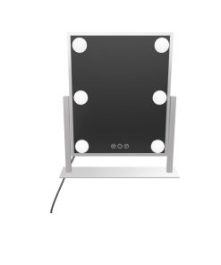 Fit our ultra-slim Hollywood Tri-Tone Makeup Mirror anywhere and complete your vanity set! Equipped with built-in long-lasting LED Lights around the mirror for even lighting. Tap the power button to power it on/off and hold to adjust the brightness to your perfect level. Tap the right button to switch between natural, warm, or cool lighting.
