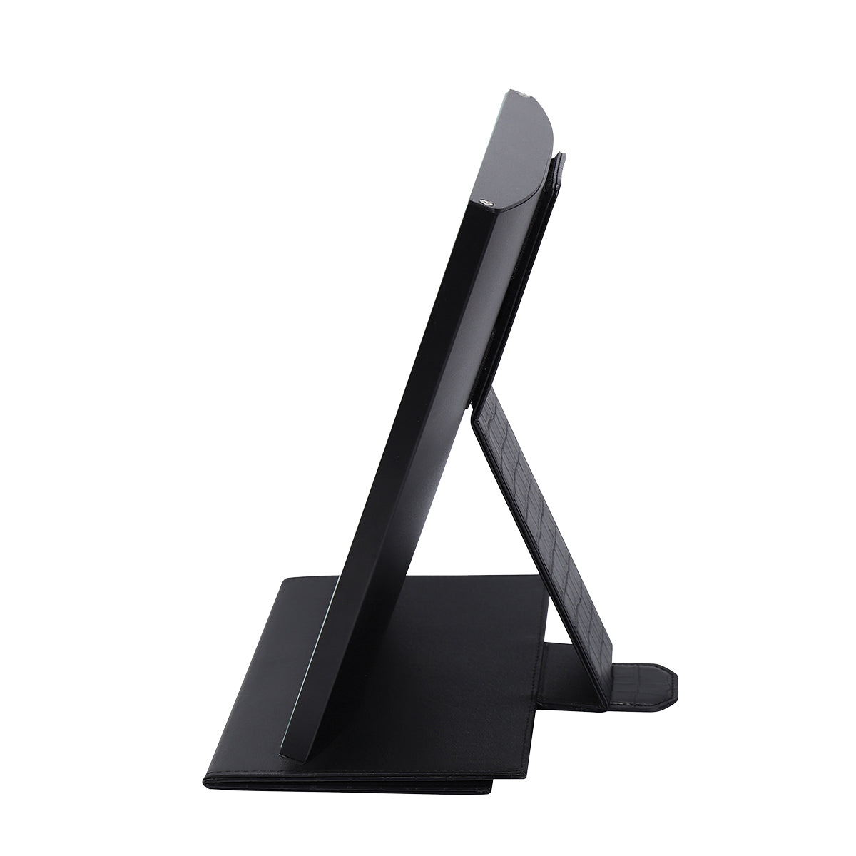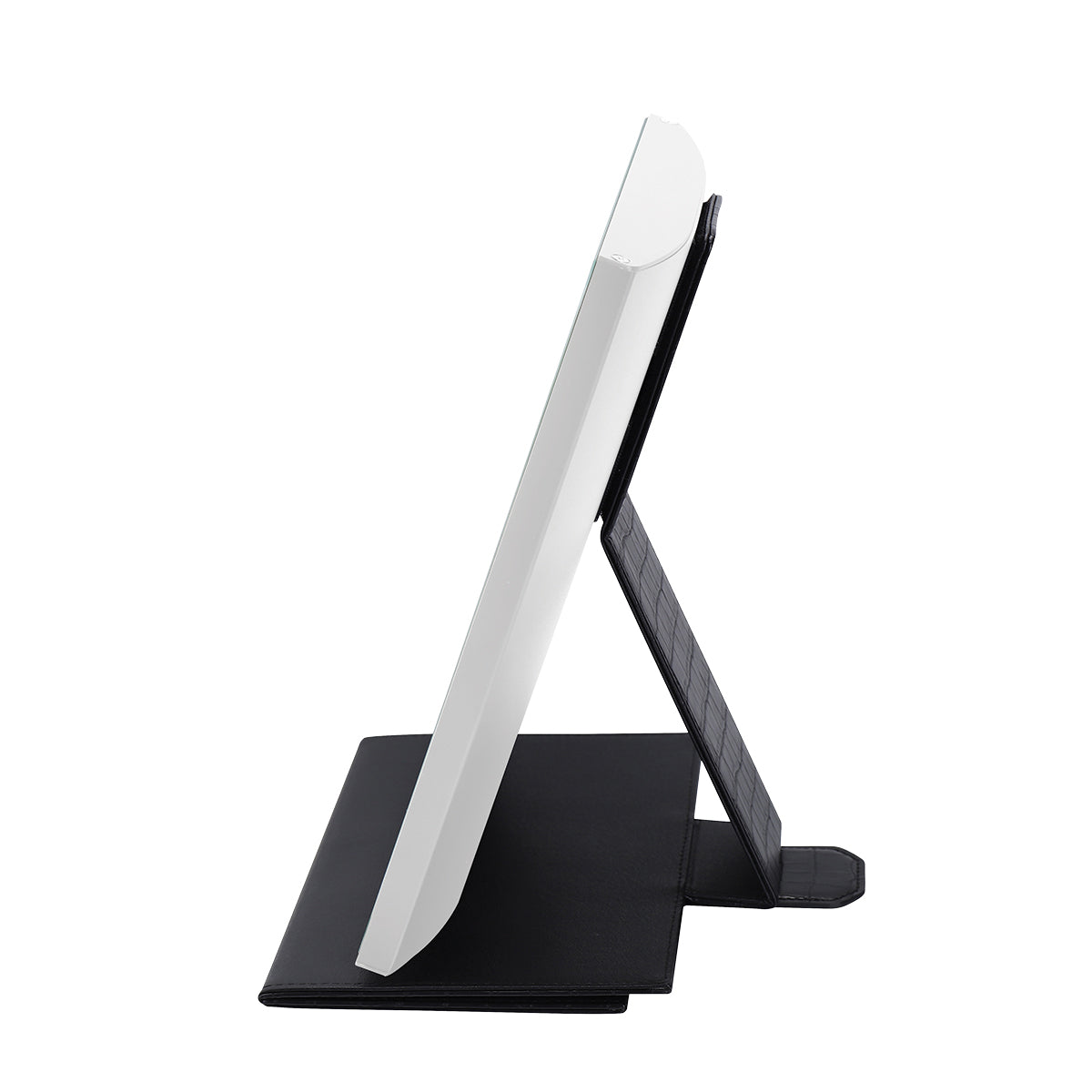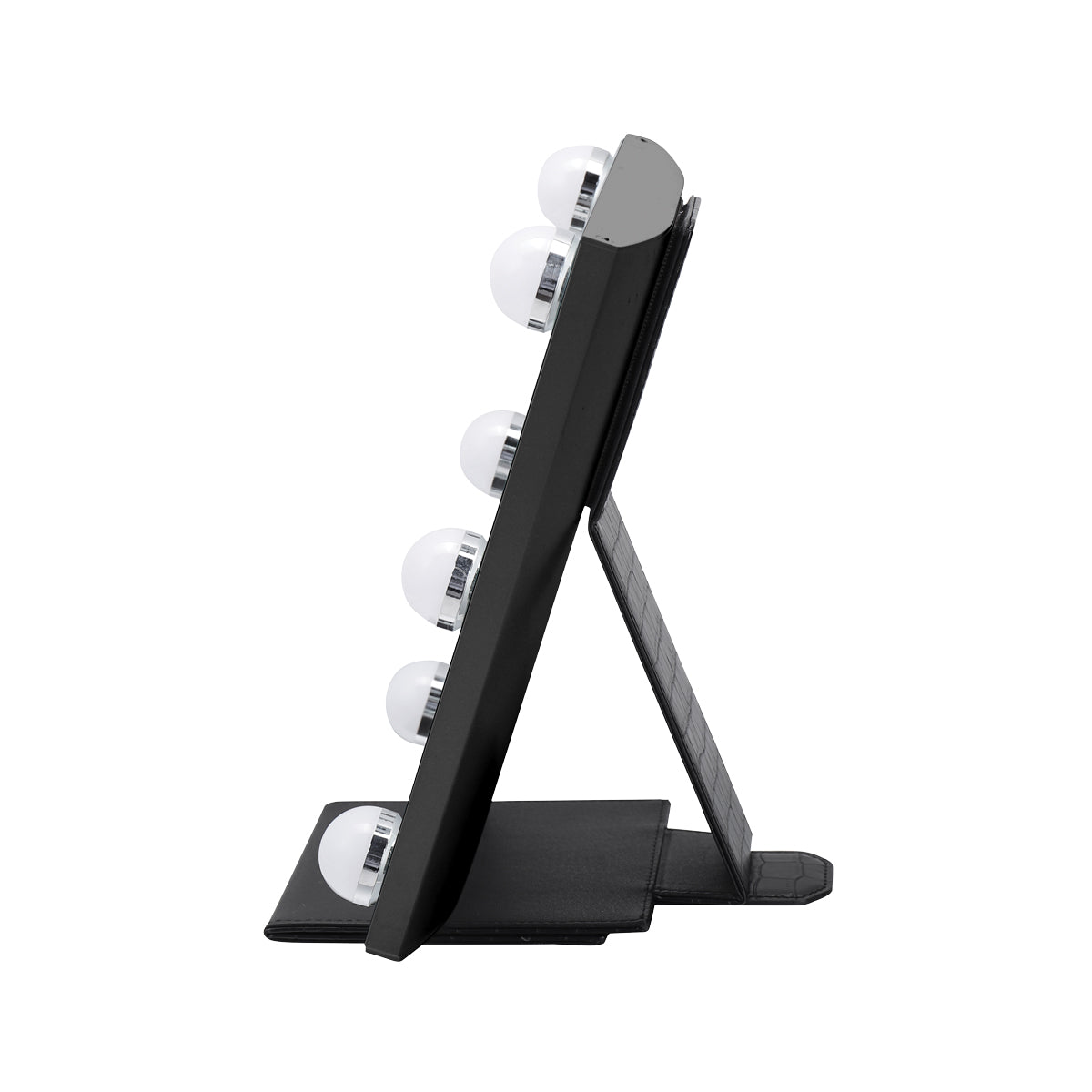 Ready to jetset? Glam wherever you go with the Lumière Touch Pad Mini! A travel friendly design with premium and stylish faux crocodile leather; that’s detachable and foldable converting into a mirror stand. Equipped with an elegant and sturdy aluminum frame with a beautiful and durable anodized finish. This mirror is available with an LED striplight or 6 ultra-bright Hollywood style bulbs with adjustable brightness. Now you can take the Hollywood glamour with you on-the-go!