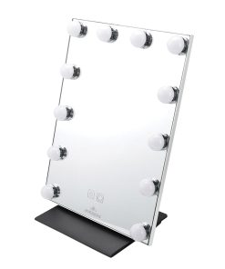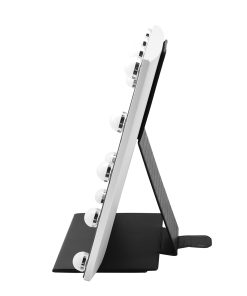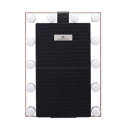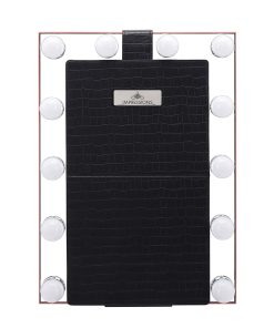 Ready to jetset? Glam wherever you go with the Lumière Touch Pad Pro! A travel friendly design with premium and stylish faux crocodile leather; that’s detachable and foldable converting into a mirror stand. Equipped with an elegant and sturdy aluminum frame with a beautiful and durable anodized finish. This mirror features an LED Striplight or 12 ultra-bright Hollywood style bulbs with adjustable brightness. Now take the Hollywood glamour with you on-the-go!