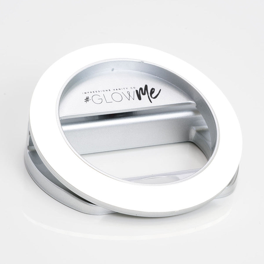 Take the perfect selfies or quick makeup touch-ups with your phone camera anywhere, anytime with the Impressions Vanity GlowMe® 2.0 USB Rechargeable LED Selfie Ring Light, it’s like having your vanity station lighting 24/7! Now available in champagne gold, rose gold, and shimmery silver!