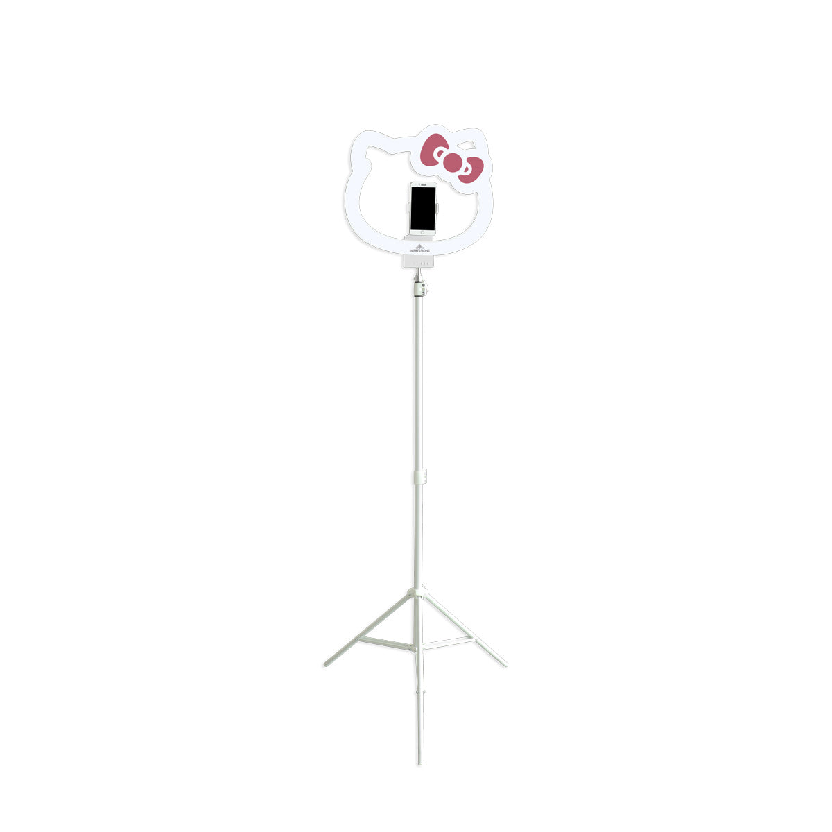 Add Hello Kitty® charm to your vlogging, streaming, or photoshoot productions with the CUTEST ring light.Equipped with a detachable and flexible phone mount, it offers hands-free operation from any angle! Set the ambiance with the RGB color-controlled lighting, giving you the option to choose from a range of colors, temperatures, and brightness levels.Utilize the remote control to access a multitude of creative options and effects:Patterns Function- Includes strobe, pulse, and rainbow effects.Mood Function- Responds to ambient sounds or music, pulsing the light to the rhythm.