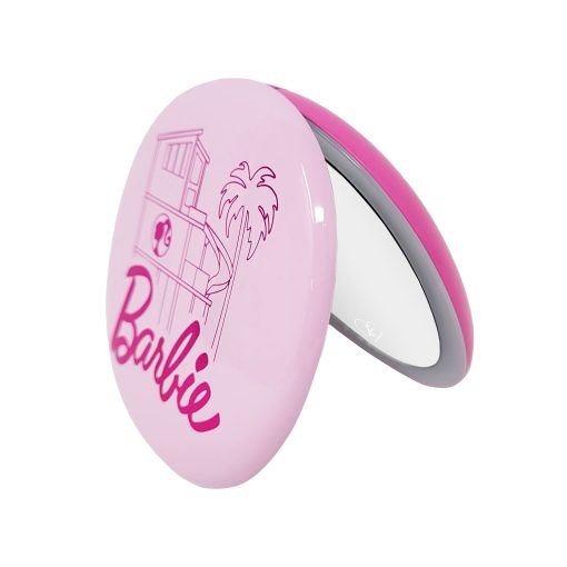 Elevate your makeup game anytime, anywhere with the Barbie™ DreamHouse™ Compact the perfect sidekick for applying makeup or refreshing your look. With its sleek and compact design, energy-efficient LED lights, and 3X magnifying mirror, achieving a flawless look is easier than ever, even in dimly lit environments.