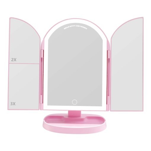 Transform your daily routine with a touch of friendship! Unfold the arch-shaped trifold mirror to reveal three panels and easily adjust to get the best angle for your makeup application. Personalize your LED lighting to fit your makeup needs, with three adjustable light temperatures. Artwork features Badtz-maru™, Chococat™, Cinnamoroll™, Hello Kitty®, Keroppi™, My Melody™, Pompompurin™ and Tuxedosam™.