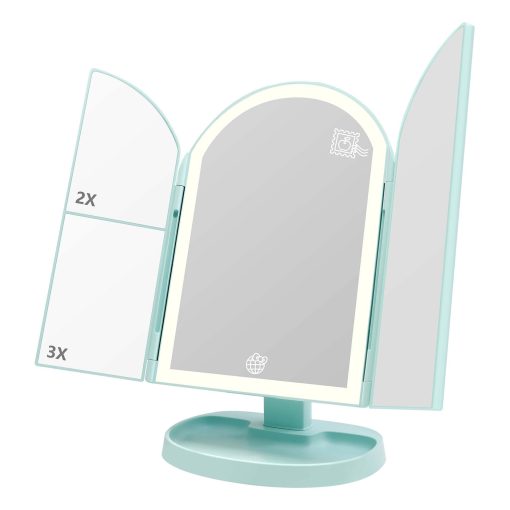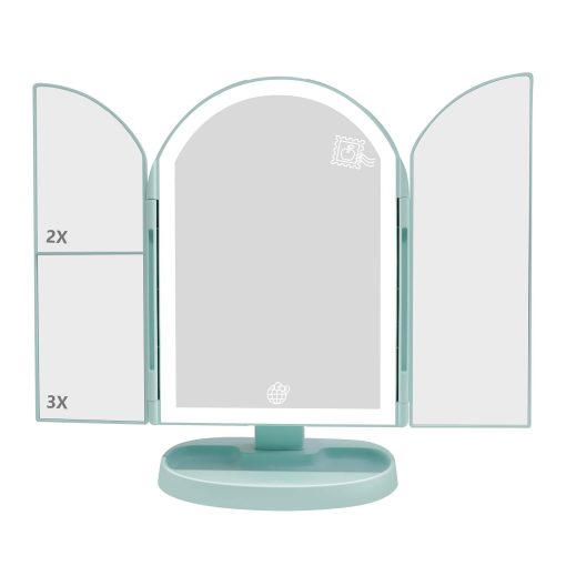 Unfold the arch-shaped trifold mirror to reveal three panels and easily adjust to get the best angle for your makeup application. Personalize your LED lighting to fit your makeup needs, with three adjustable light temperatures. Artwork features Badtz-maru™, Cinnamoroll™, Hello Kitty®, Keroppi™, My Melody™, and Pompompurin™.