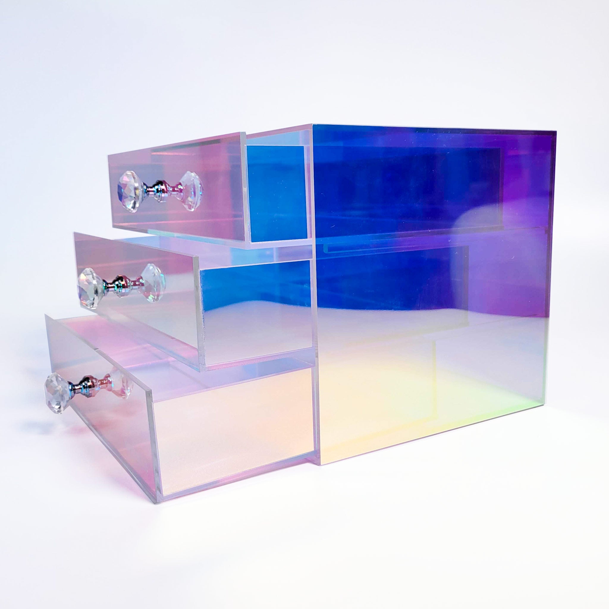 Organize your space with the Prisma 3-Tier Acrylic Organizer. Its durable acrylic shelves and crystal knobs give it a stylish and contemporary look, perfect for any decor. Keep your items organized and easily accessible with this multifunctional storage option.