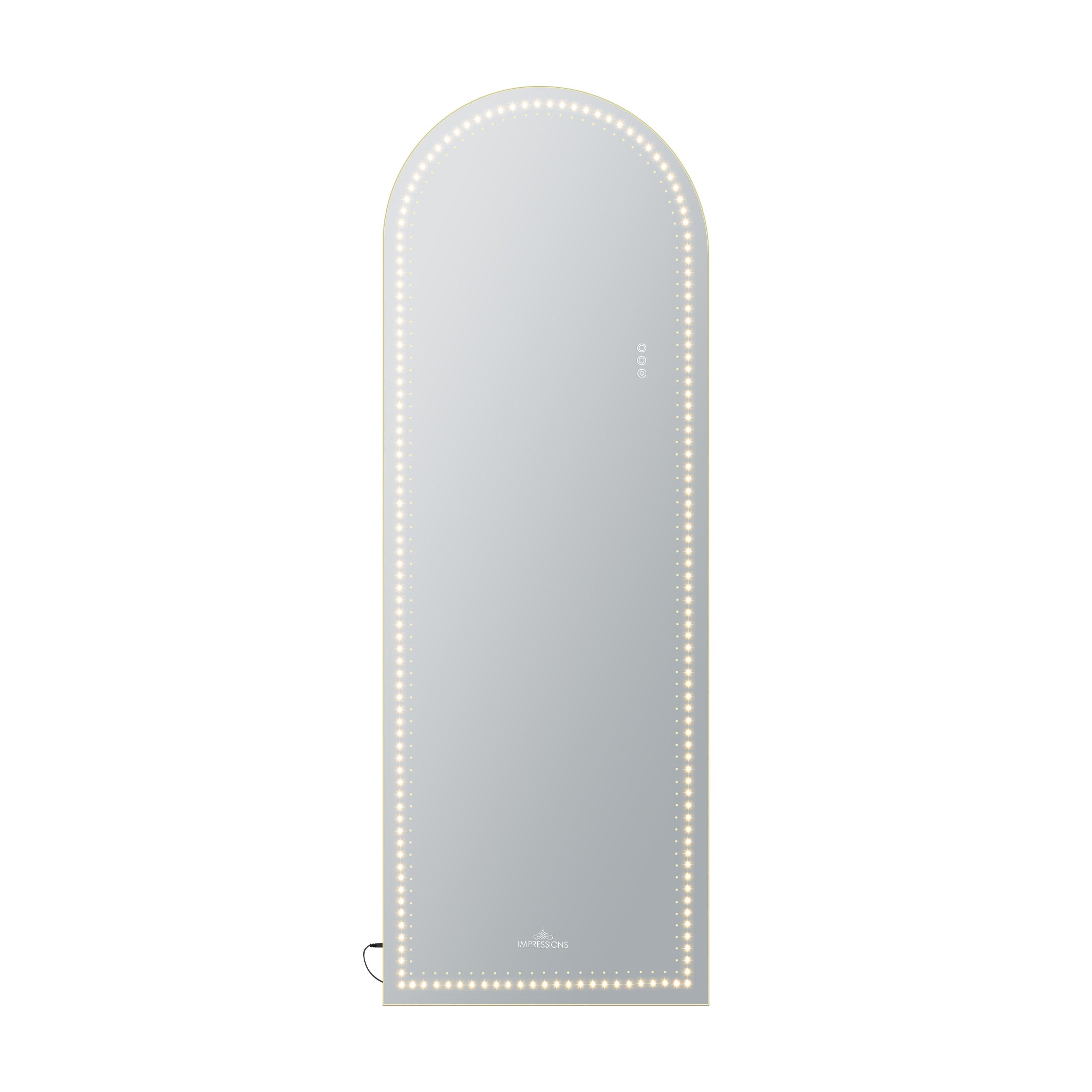 The Stage Lite Full Length Mirror is a modern and arch twist on our iconic Hollywood-style dressing room mirrors, featuring an ultra-slim aluminum build and foldable easel leg stand. Simply tap through the tri tone lighting and enjoy personalized brightness control by holding down the sensor button. Whether you prefer clean lines or graceful curves, step into the spotlight and transform your vanity experience.