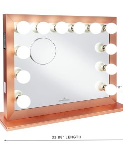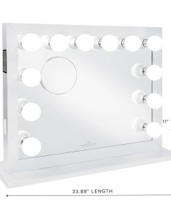Light up your beauty space with our Starlight Plus Vanity Mirror which gives the classic vanity experience. This mirror provides perfect lighting for makeup application, taking the perfect selfies or answering work from home zoom calls. The brilliant LED bulbs are placed within the mirror. This eye catching wide frame is the perfect statement piece for any home. It comes with a magnetic 5x magnified mirror for any close-up touch up.The Starlight Plus features wireless Bluetooth Speaker that lets you pair the Bluetooth to the mirror and lets you adjust volume. This mirror is encased in a robust aluminum body that can easily be wall-mounted or attached to the included base tabletop use.