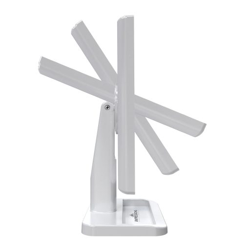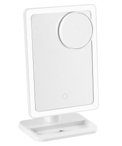 This light and portable illuminated makeup mirror has a bright white LED light strip activated and dimmable by a touch sensor button. The base includes a catchall tray to store earrings, makeup brushes, and other smaller accessories. Rechargeable so you can take it anywhere with you!