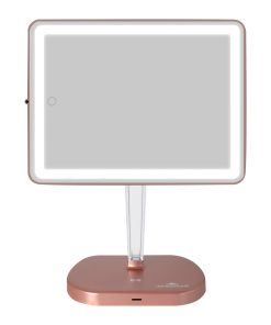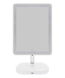Our best-selling mirror just got an upgrade! The Touch Pro 2.0 with QI Charging Base features a crystal inlay strip light. With Bluetooth connectivity, you can easily stream music during your makeup routine, answer phone calls and use the Qi charging base to charge your phone. Dance and groove to the music with this perfect companion.