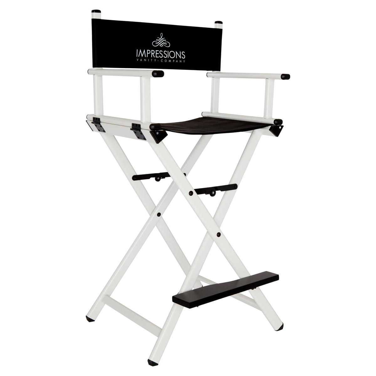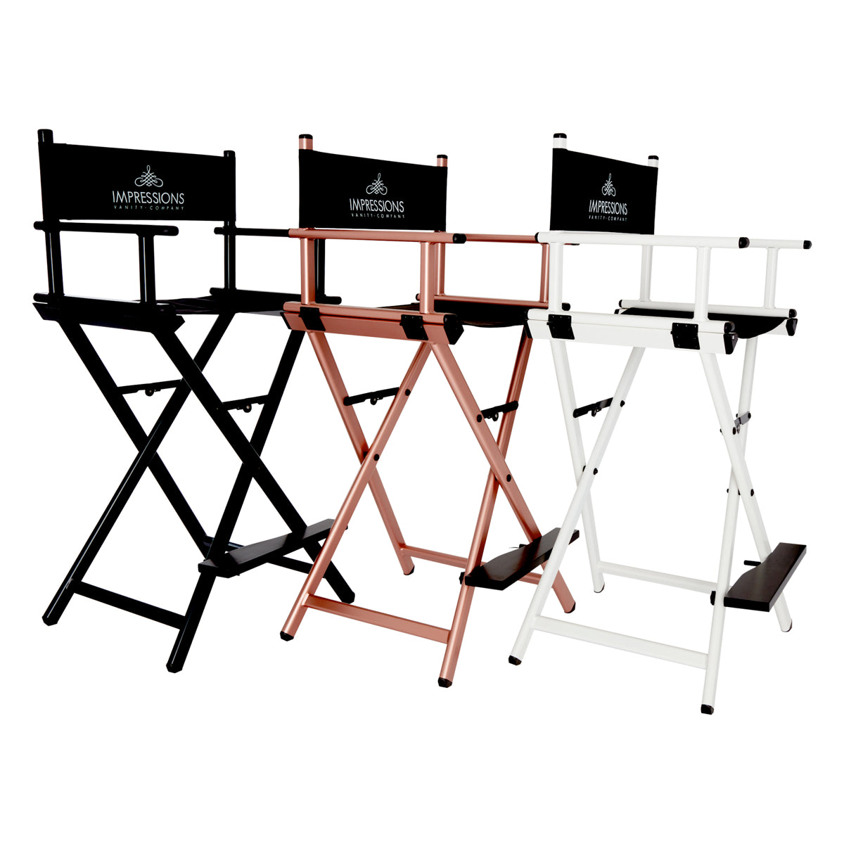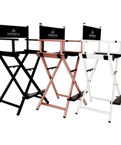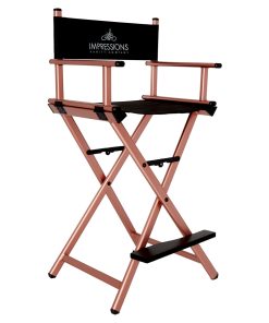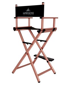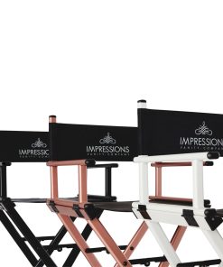 Feel like a pro with Impression Vanity’s Foldable Professional Makeup Artist’s Chair! Designed with a light-weight aluminum frame to help the pro on the go. Easily foldable with inner hinges for increased stability. The seat and backrest use a breathable, comfortable and durable fabric. Backrest includes/displays the Impressions Vanity Company logo.Available in silver, black, white, or rose gold frame.Our products are engineered and tested to meet and exceed industry standards in all areas, weight-bearing exercises included. While we do not provide specific weight limits on seating, this chair is designed to support a full-sized adult.