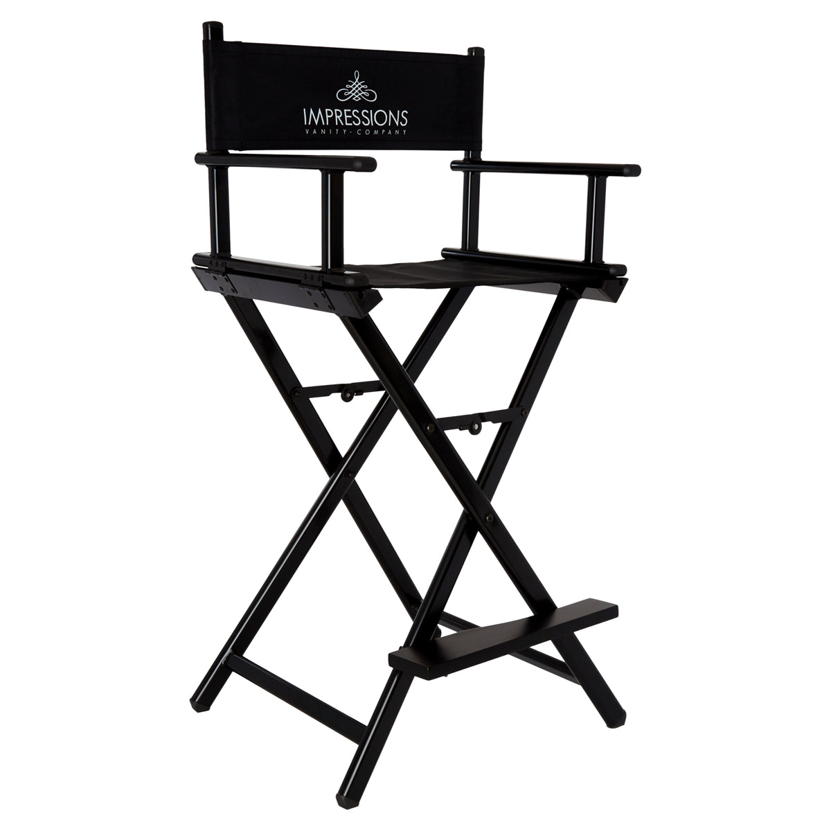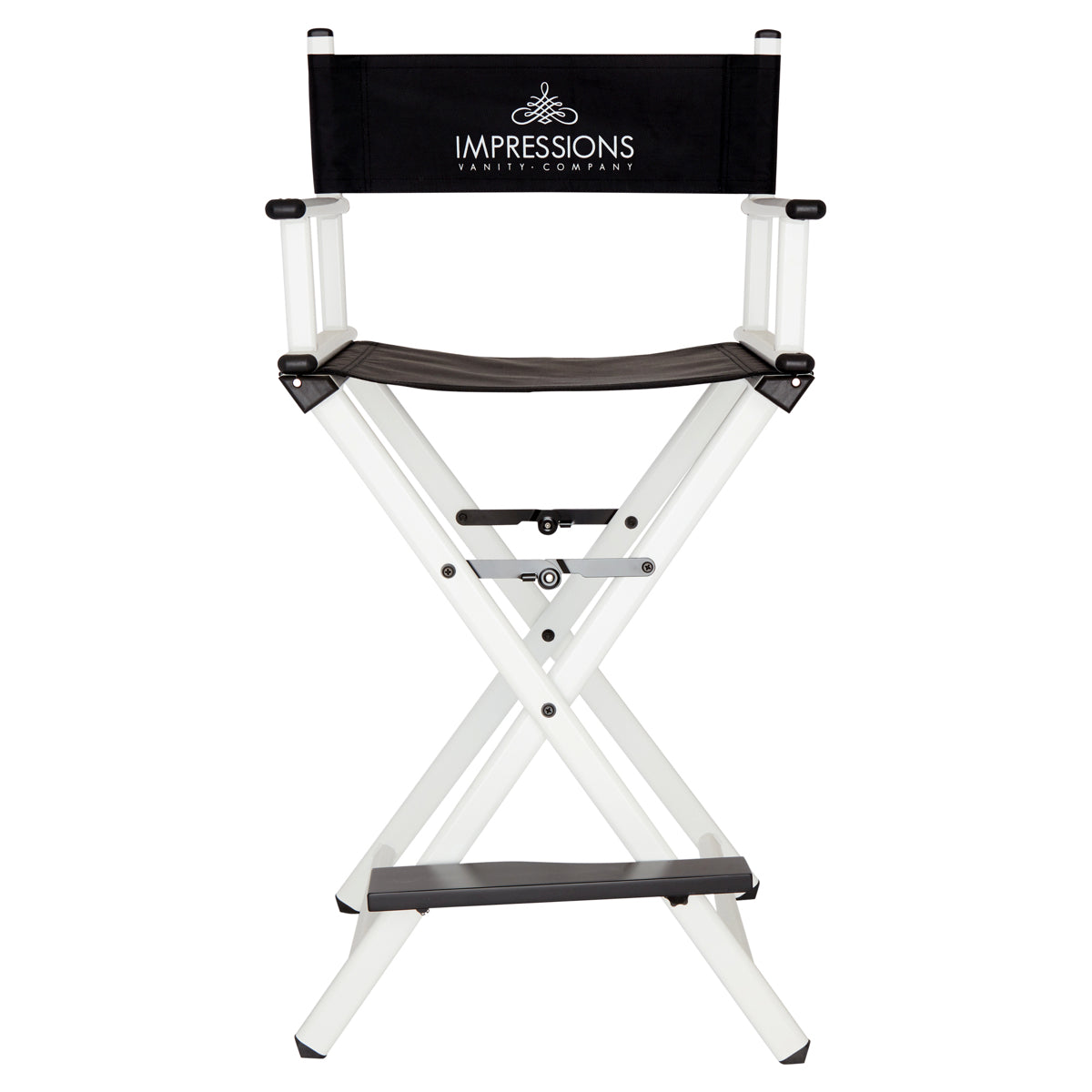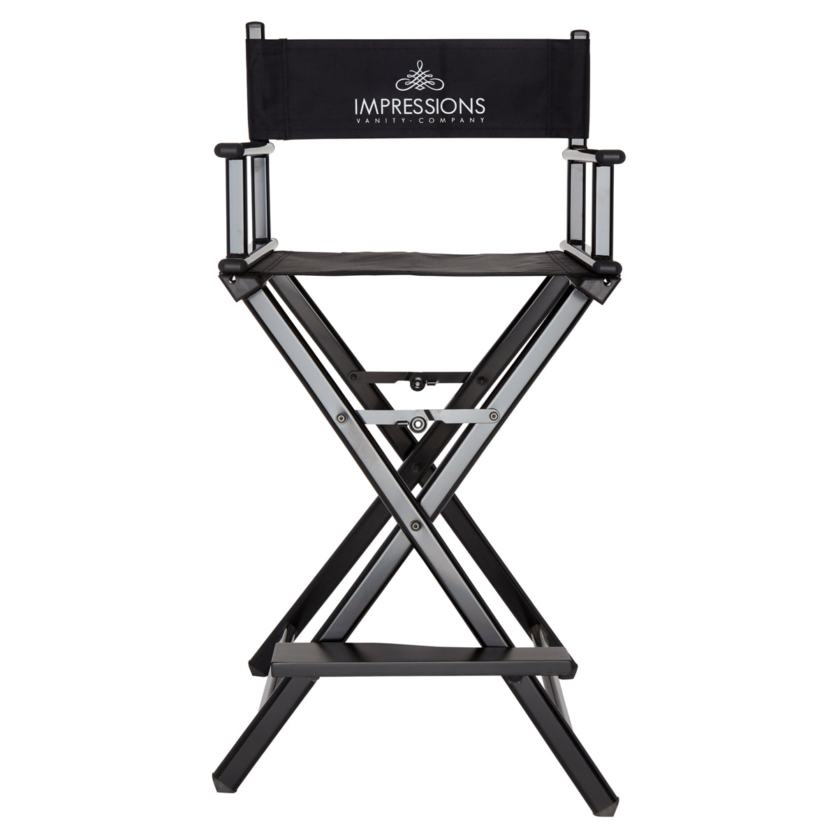 Feel like a pro with Impression Vanity’s Foldable Professional Makeup Artist’s Chair! Designed with a light-weight aluminum frame to help the pro on the go. Easily foldable with inner hinges for increased stability. The seat and backrest use a breathable, comfortable and durable fabric. Backrest includes/displays the Impressions Vanity Company logo.Available in silver, black, white, or rose gold frame.Our products are engineered and tested to meet and exceed industry standards in all areas, weight-bearing exercises included. While we do not provide specific weight limits on seating, this chair is designed to support a full-sized adult.