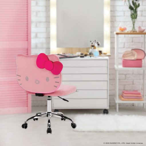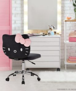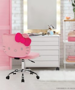 Show off your sweet personality with our Hello Kitty® Kawaii Swivel Vanity Chair! Designed with love and that signature supercute charm we all know and adore. With smooth-rolling wheels and 360 degree swivel, you can effortlessly glide from your vanity to your wardrobe or mirror without leaving your seat. Whether you’re a makeup artist in the making or just love surrounding yourself with all things kawaii, this swivel chair is sure to be a sweet addition to your glam room.P.S: This chair doesn’t just look good; it feels amazing too. A perfect treat for yourself or a special gift for friends that love all things Hello Kitty! **Purchases limited to (1) per order