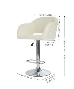 The Kimberly Quilted Vanity Stool features embossed diamond quilt design on easy-to-clean white or black leatherette. A perfect compliment to your vanity space.Our products are engineered and tested to meet and exceed industry standards in all areas, weight-bearing exercises included. While we do not provide specific weight limits on seating, this chair is designed to support a full-sized adult.
