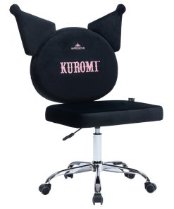 Show your love for your cheeky but charming friend, Kuromi™, with this swivel vanity chair that will certainly make a statement in your glam room. With her signature hood and poms, this chair makes the perfect gift for the ultimate Kuromi fan! Take the mischievous fun to your vanity or desk.**Purchases limited to (1) per colorReturn Policy Disclaimer: Please note that once the chair is assembled with the ‘ears,’ they become non-removable. Therefore, in the event of a return, the customer will need to ship the chair back using their own packaging. We appreciate your understanding of this policy.
