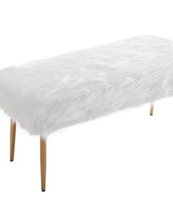 Impressions Vanity Shop Vanity Chairs & Seating Layla Vanity Bench | White Faux Lamb’s Wool