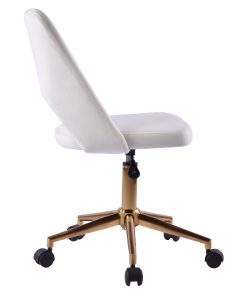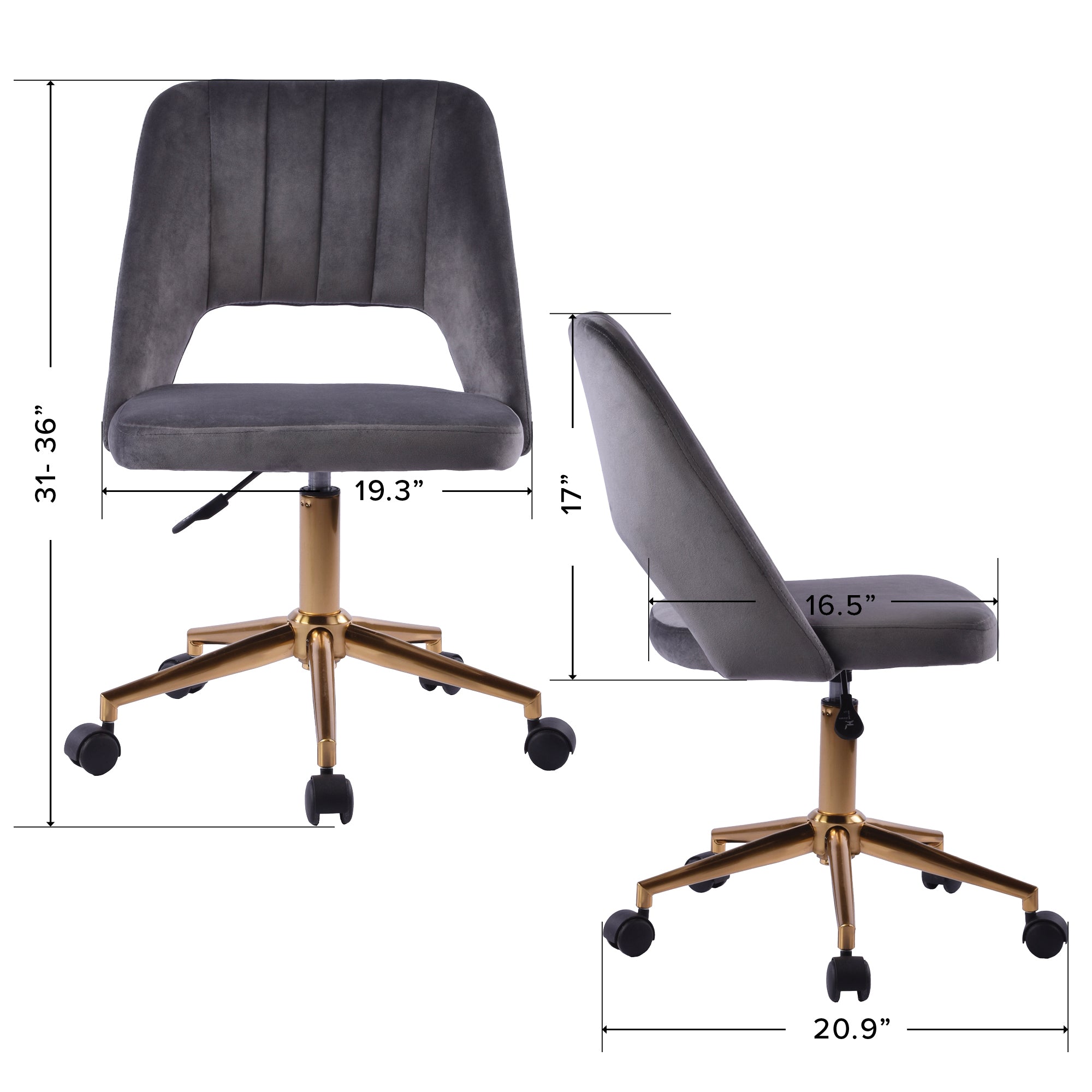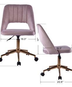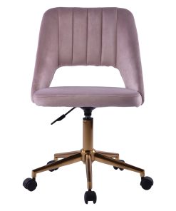 For that sleek and chic finish, complete your glam room with the Maya Swivel Vanity Chair. This stunning swivel chair easily spins 360-degrees and sits on caster wheels, making transporting this piece simple beyond belief. Made with smooth soft velvet and available in white, pink or dark grey colors.