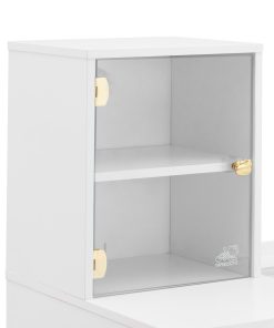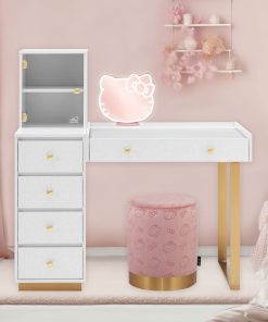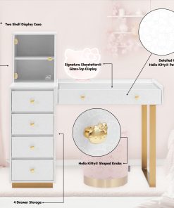 This Hello Kitty® SlayStation® Duet Vanity Desk is a true gem for those that adore a touch of supercute charm to their glam room! If you’re looking for something space-efficient and TONS of storage, you’ve found it! This versatile vanity desk combines the functionality of our SlayStation with Hello Kitty’s timeless style. This desk-and-drawer set boasts a thoughtfully designed storage system, complete with the iconic SlayStation clear-view glass top, spacious front/side drawers, and a tabletop 2 tier shelf display feature. Whether you’re perfecting your glam, or focused on your studies, this multi-purpose vanity desk is designed to make the most of your limited space.**Wipe clean with soft damp cloth. Avoid using harsh chemicals on printed surface**